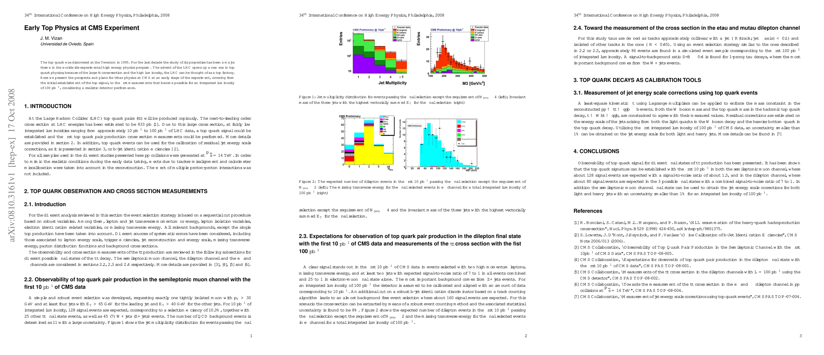 Summary: This paper outlines the initial prospects and plans for studying top quark properties at the CMS experiment on the LHC, focusing on establishing the top signal and conducting early measurements, given a realistic detector performance and an integrated luminosity of 100 $pb^{-1}$. The LHC's high top quark production cross-section is highlighted as a key advantage for top quark physics studies.