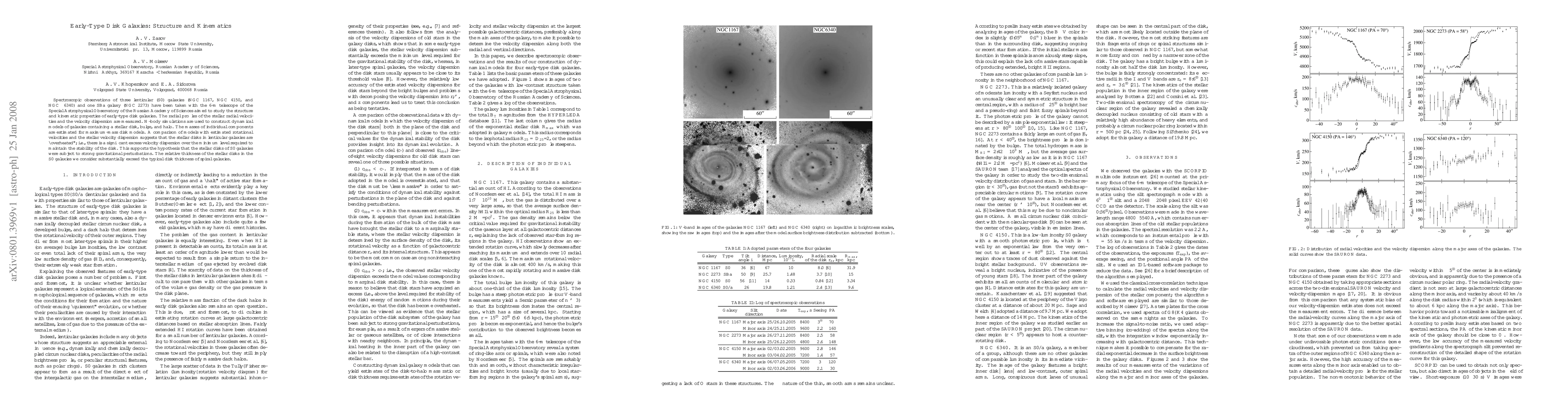 Spectroscopic observations of three lenticular (S0) galaxies (NGC 1167, NGC 4150, and NGC 6340) and one SBa galaxy (NGC 2273) have been taken with the 6-m telescope of the Special AstrophysicalObservatory of the Russian Academy of Sciences aimed to study the structure and kinematic properties of early-type disk galaxies. The radial profiles of the stellar radial velocities and the velocity dispersion are measured. N-body simulations are used to construct dynamical models of galaxies containing a stellar disk, bulge, and halo. The masses of individual components are estimated formaximum-mass disk models. A comparison of models with estimated rotational velocities and the stellar velocity dispersion suggests that the stellar disks in lenticular galaxies are "overheated"; i.e., there is a significant excess velocity dispersion over the minimum level required to maintain the stability of the disk. This supports the hypothesis that the stellar disks of S0 galaxies were subject to strong gravitational perturbations. The relative thickness of the stellar disks in the S0 galaxies considered substantially exceed the typical disk thickness of spiral galaxies.