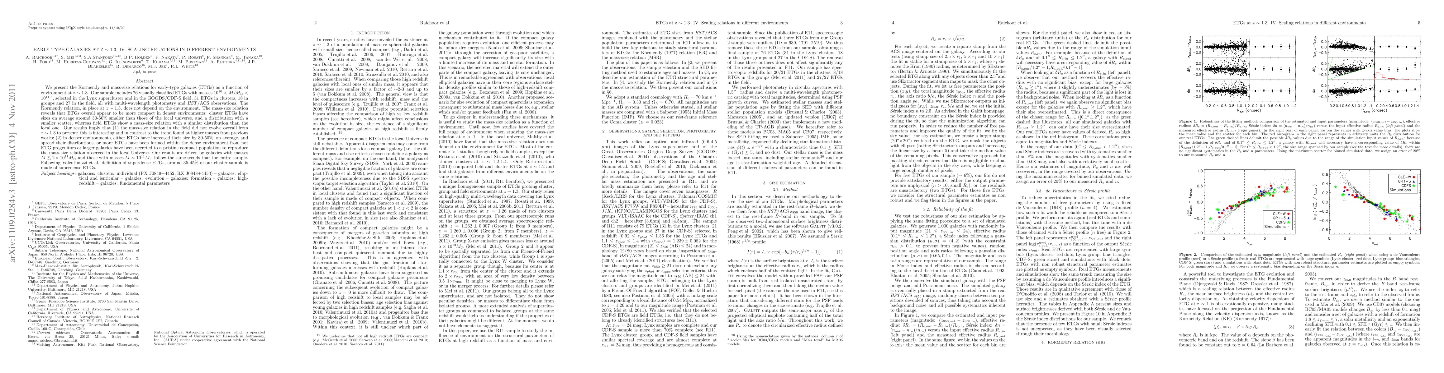 Early-type galaxies at z~1.3 show compact sizes in denser environments, suggesting galaxy evolution may differ from previous findings, while mass-size relations in fields don't significantly change over time.