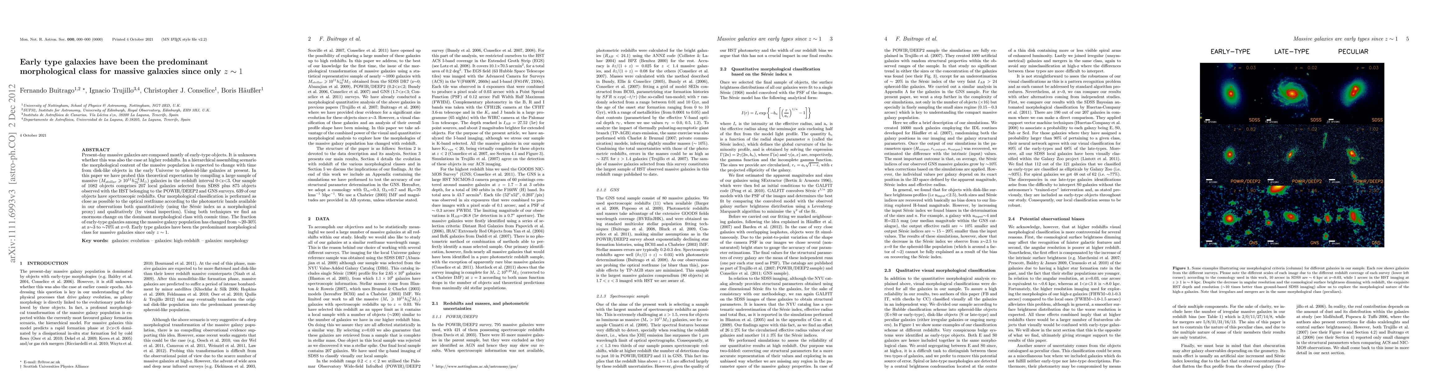 This paper investigates the morphological evolution of massive galaxies from z~3 to z=0, finding that early-type galaxies have dominated the population since z~1. Using a large sample of galaxies, the study reveals a significant increase in the fraction of early-type galaxies from 20-30% at z~3 to ~70% at z=0.