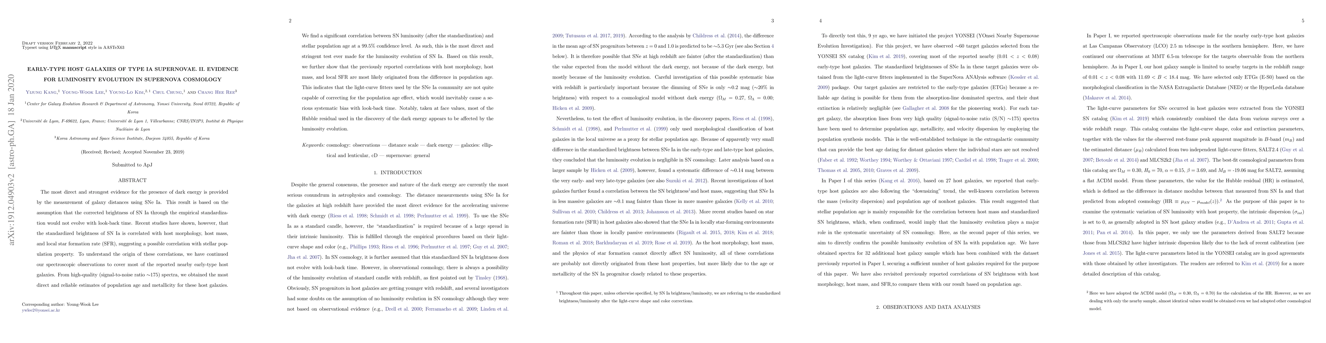 The most direct and strongest evidence for the presence of dark energy is provided by the measurement of galaxy distances using SNe Ia. This result is based on the assumption that the corrected brightness of SN Ia through the empirical standardization would not evolve with look-back time. Recent studies have shown, however, that the standardized brightness of SN Ia is correlated with host morphology, host mass, and local star formation rate (SFR), suggesting a possible correlation with stellar population property. To understand the origin of these correlations, we have continued our spectroscopic observations to cover most of the reported nearby early-type host galaxies. From high-quality (signal-to-noise ratio ~175) spectra, we obtained the most direct and reliable estimates of population age and metallicity for these host galaxies. We find a significant correlation between SN luminosity (after the standardization) and stellar population age at a 99.5 % confidence level. As such, this is the most direct and stringent test ever made for the luminosity evolution of SN Ia. Based on this result, we further show that the previously reported correlations with host morphology, host mass, and local SFR are most likely originated from the difference in population age. This indicates that the light-curve fitters used by the SNe Ia community are not quite capable of correcting for the population age effect, which would inevitably cause a serious systematic bias with look-back time. Notably, taken at face values, most of the Hubble residual used in the discovery of the dark energy appears to be affected by the luminosity evolution.