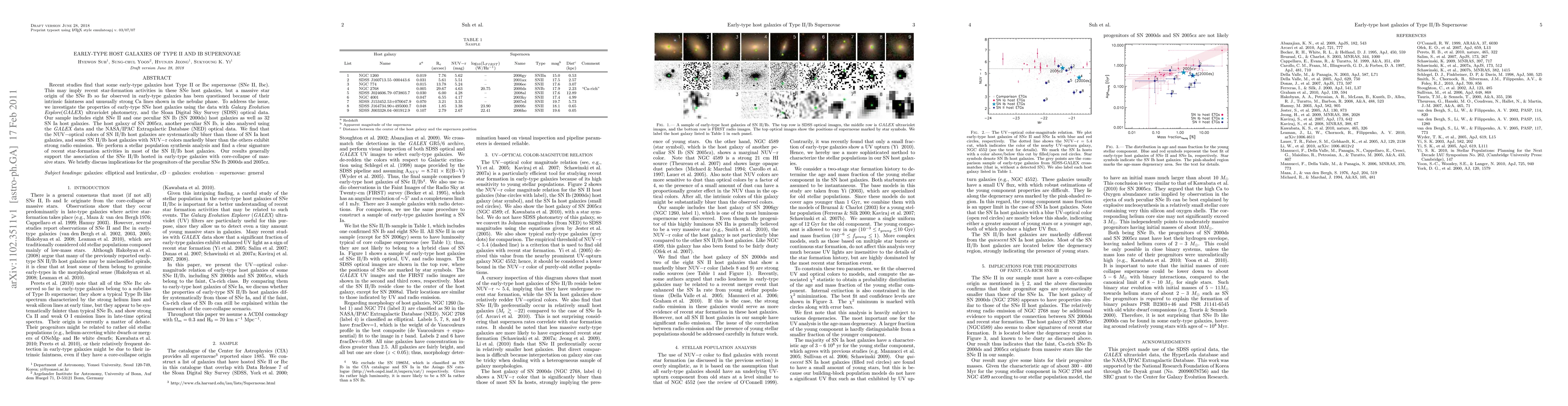 This study investigates the properties of early-type galaxies hosting Type II and Ib supernovae (SNe II, Ib) using ultraviolet and optical data, finding evidence of recent star-formation activities in these galaxies. The results support the massive star origin of SNe II and Ib, despite their unusual characteristics.