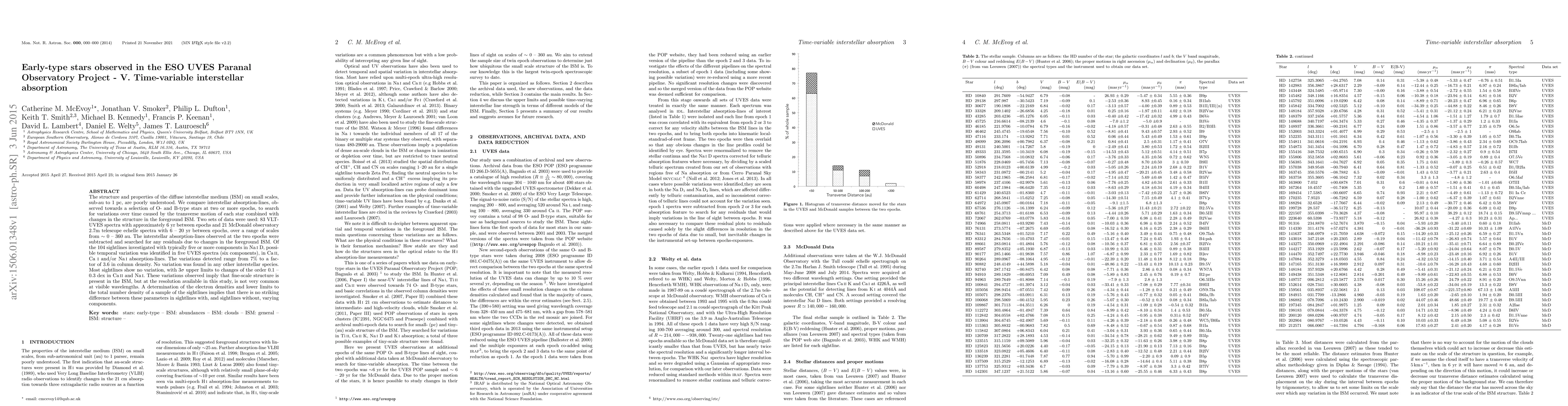 The structure and properties of the diffuse interstellar medium (ISM) on small scales, sub-au to 1 pc, are poorly understood. We compare interstellar absorption-lines, observed towards a selection of O- and B-type stars at two or more epochs, to search for variations over time caused by the transverse motion of each star combined with changes in the structure in the foreground ISM. Two sets of data were used: 83 VLT- UVES spectra with approximately 6 yr between epochs and 21 McDonald observatory 2.7m telescope echelle spectra with 6 - 20 yr between epochs, over a range of scales from 0 - 360 au. The interstellar absorption-lines observed at the two epochs were subtracted and searched for any residuals due to changes in the foreground ISM. Of the 104 sightlines investigated with typically five or more components in Na I D, possible temporal variation was identified in five UVES spectra (six components), in Ca II, Ca I and/or Na I absorption-lines. The variations detected range from 7\% to a factor of 3.6 in column density. No variation was found in any other interstellar species. Most sightlines show no variation, with 3{\sigma} upper limits to changes of the order 0.1 - 0.3 dex in Ca II and Na I. These variations observed imply that fine-scale structure is present in the ISM, but at the resolution available in this study, is not very common at visible wavelengths. A determination of the electron densities and lower limits to the total number density of a sample of the sightlines implies that there is no striking difference between these parameters in sightlines with, and sightlines without, varying components.
