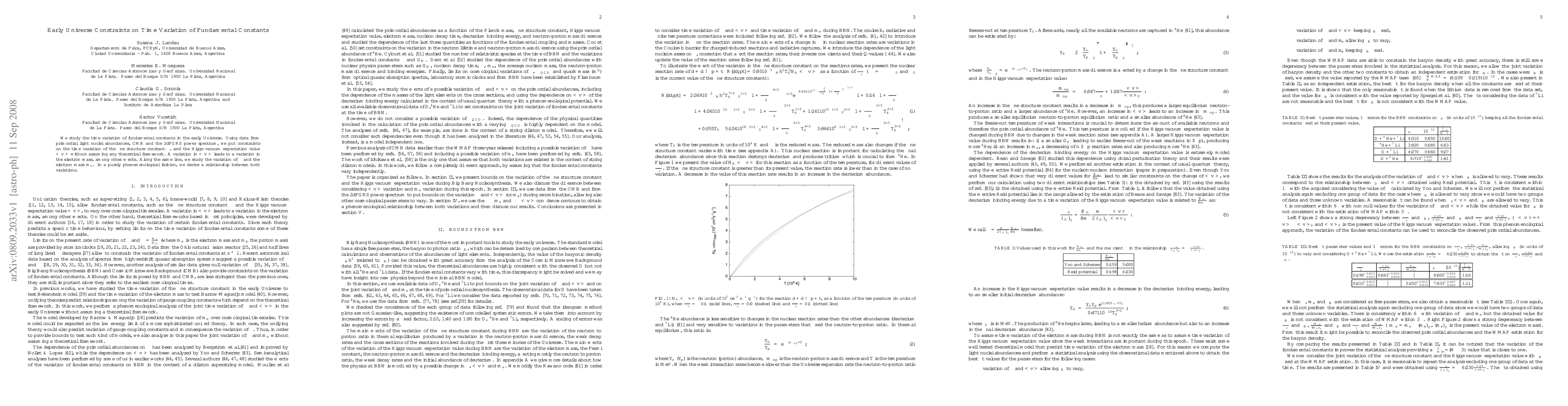 This paper investigates the time variation of fundamental constants, specifically the fine structure constant $\alpha$ and the Higgs vacuum expectation value $<v>$, using observational data from primordial light nuclei, CMB, and 2dFGRS. The study derives constraints on these variations without relying on any specific theoretical framework and establishes a phenomenological relationship between the variations of $\alpha$ and the electron mass $m_e$.