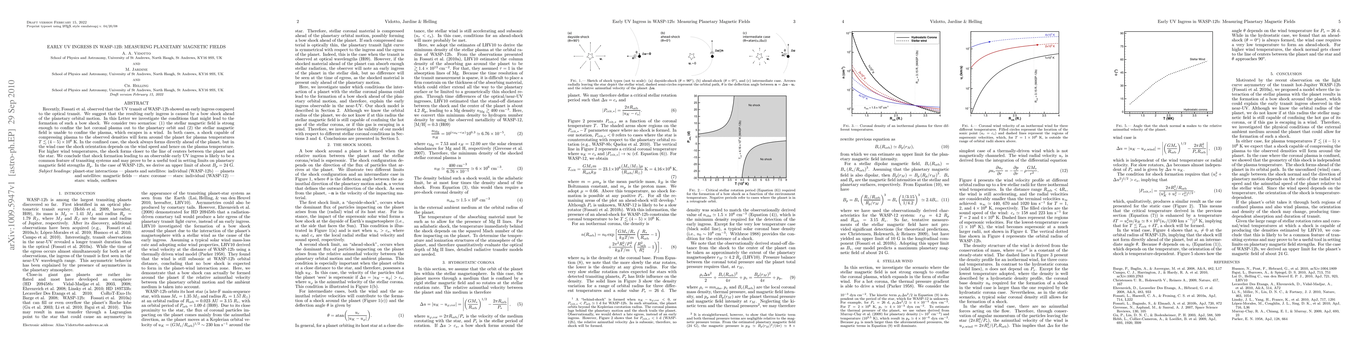Researchers investigated why WASP-12b's UV transit showed an early ingress and found that a bow shock formed around the planet due to stellar magnetic fields, potentially limiting planetary magnetic field strengths.