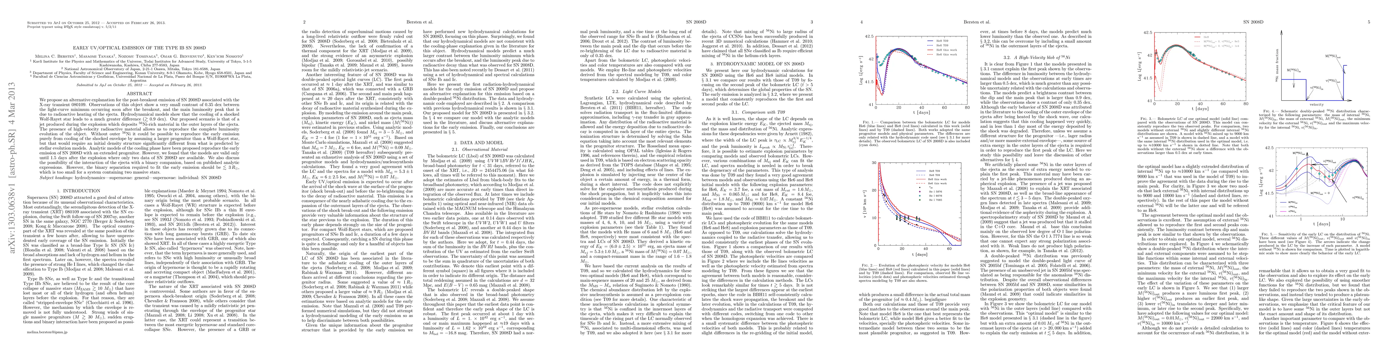 We propose an alternative explanation for the post-breakout emission of SN 2008D associated with the X-ray transient 080109. Observations of this object show a very small contrast of 0.35 dex between the light-curve minimum occurring soon after the breakout, and the main luminosity peak that is due to radioactive heating of the ejecta. Hydrodynamical models show that the cooling of a shocked Wolf-Rayet star leads to a much greater difference (> 0.9 dex). Our proposed scenario is that of a jet produced during the explosion which deposits 56Ni-rich material in the outer layers of the ejecta. The presence of high-velocity radioactive material allows us to reproduce the complete luminosity evolution of the object. Without outer 56Ni it could be possible to reproduce the early emission purely from cooling of the shocked envelope by assuming a larger progenitor than a Wolf-Rayet star, but that would require an initial density structure significantly different from what is predicted by stellar evolution models. Analytic models of the cooling phase have been proposed reproduce the early emission of SN 2008D with an extended progenitor. However, we found that the models are valid only until 1.5 days after the explosion where only two data of SN 2008D are available. We also discuss the possibility of the interaction of the ejecta with a binary companion, based on published analytic expressions. However, the binary separation required to fit the early emission should be < 3 Rsun which is too small for a system containing two massive stars.