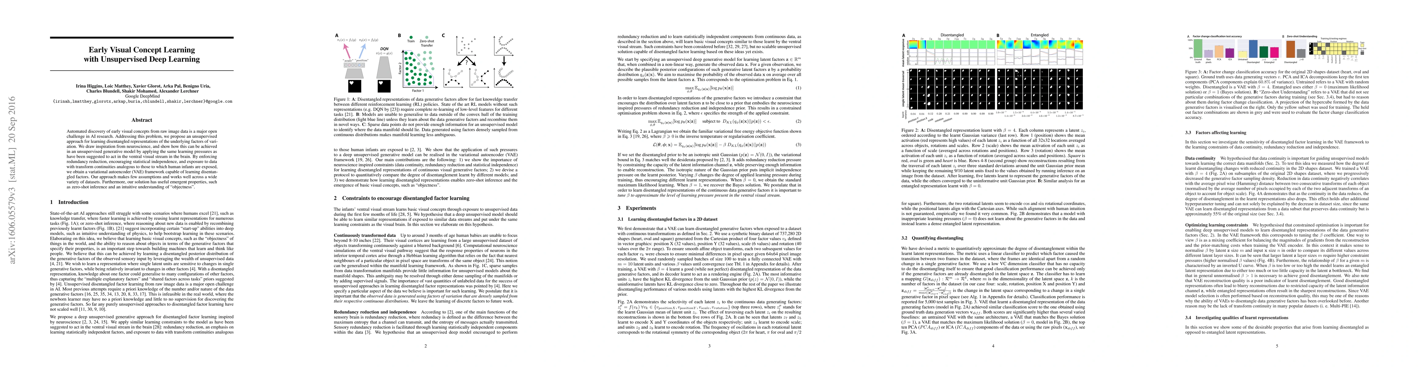 Automated discovery of early visual concepts from raw image data is a major open challenge in AI research. Addressing this problem, we propose an unsupervised approach for learning disentangled representations of the underlying factors of variation. We draw inspiration from neuroscience, and show how this can be achieved in an unsupervised generative model by applying the same learning pressures as have been suggested to act in the ventral visual stream in the brain. By enforcing redundancy reduction, encouraging statistical independence, and exposure to data with transform continuities analogous to those to which human infants are exposed, we obtain a variational autoencoder (VAE) framework capable of learning disentangled factors. Our approach makes few assumptions and works well across a wide variety of datasets. Furthermore, our solution has useful emergent properties, such as zero-shot inference and an intuitive understanding of "objectness".