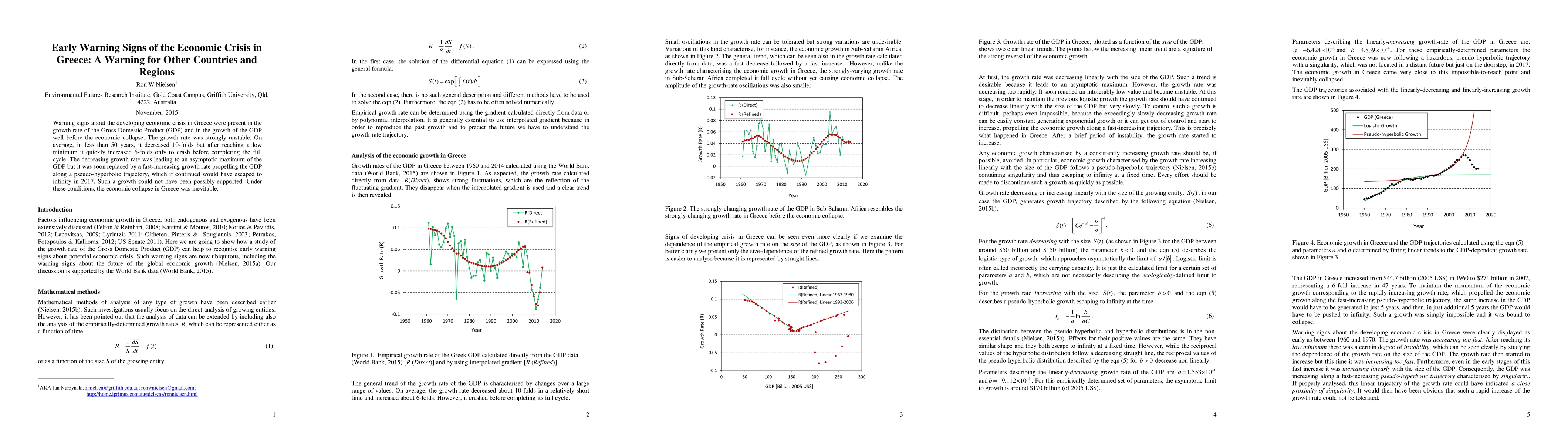 A Greek research paper identified early warning signs of an economic crisis in 2000s Greece, including unstable growth rates that led to a collapse in 2017. The study's findings suggest that similar crises may be brewing in other countries and regions.