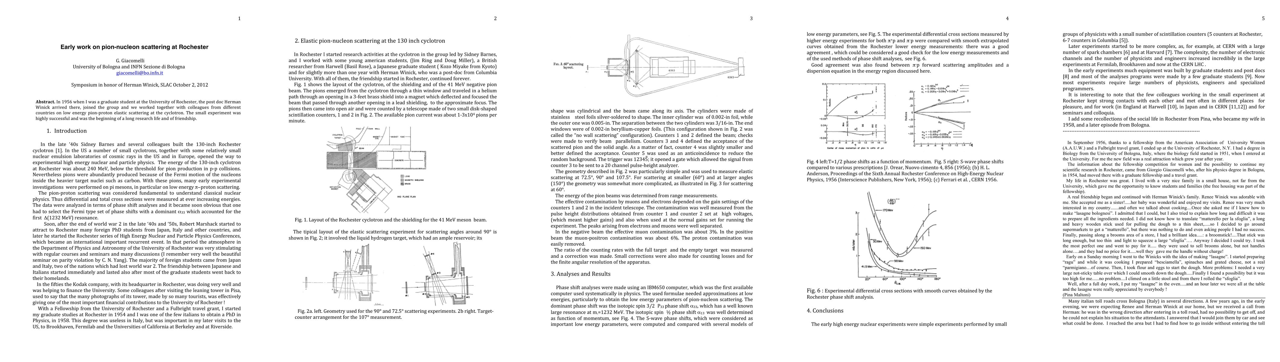In 1956 when I was a graduate student at the University of Rochester, the post doc Herman Winick arrived there, joined the group and we worked together with colleagues from different countries on low energy pion-proton elastic scattering at the cyclotron. The small experiment was highly successful and was the beginning of a long research life and of friendship.