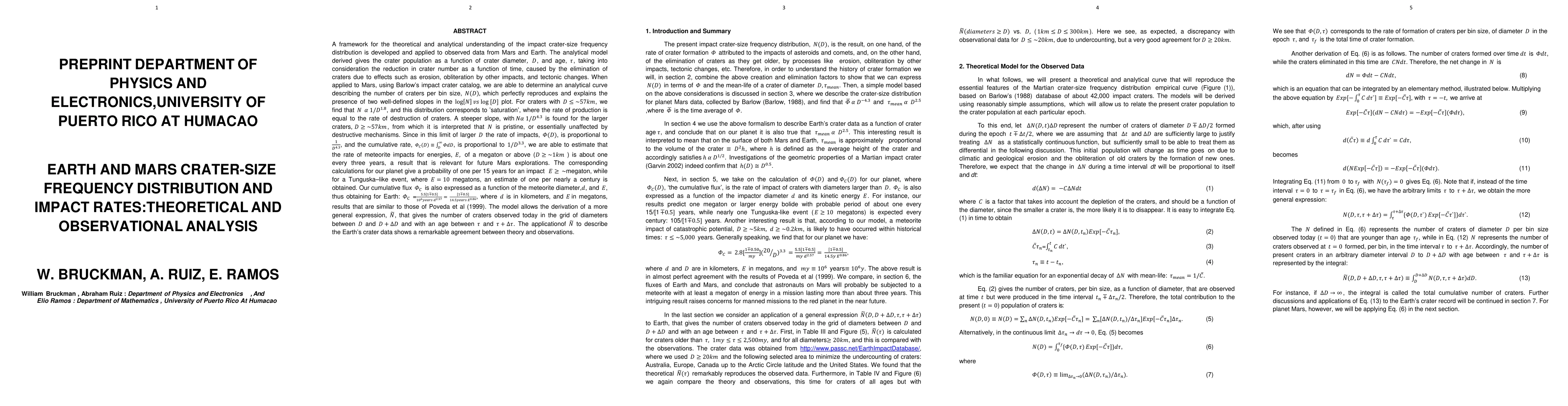 Researchers develop a framework to analyze crater size distribution on Earth and Mars, estimating an impact rate of one per 15 years for Earth and near one every three years for Mars, with potential implications for future space exploration.