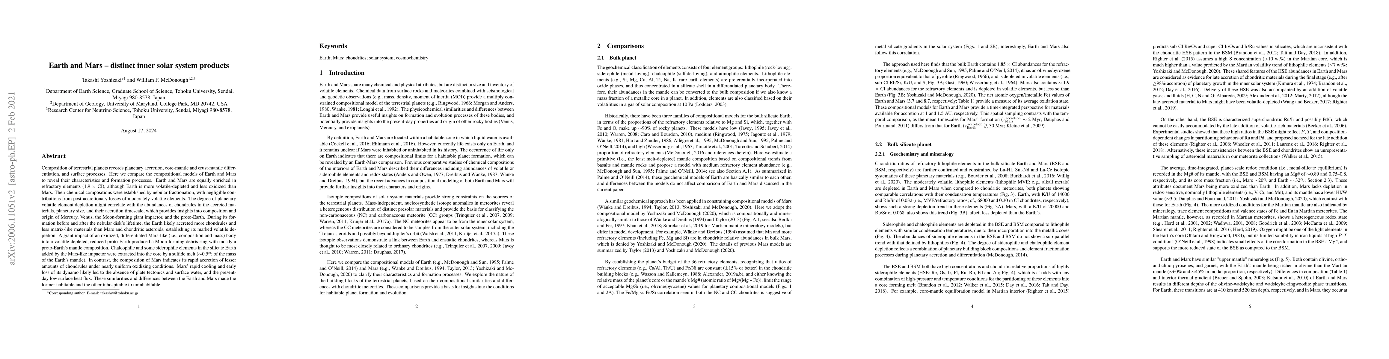 This paper compares the compositional models of Earth and Mars, revealing that while both planets are enriched in refractory elements, Earth is more volatile-depleted and less oxidized than Mars. The differing degrees of volatile element depletion suggest insights into the formation processes of terrestrial planets, including Mercury, Venus, and the Moon. Earth's marked volatile depletion and Moon formation are attributed to a giant impact with a Mars-like body, while Mars' rapid accretion and early dynamo loss led to its inhospitable conditions.