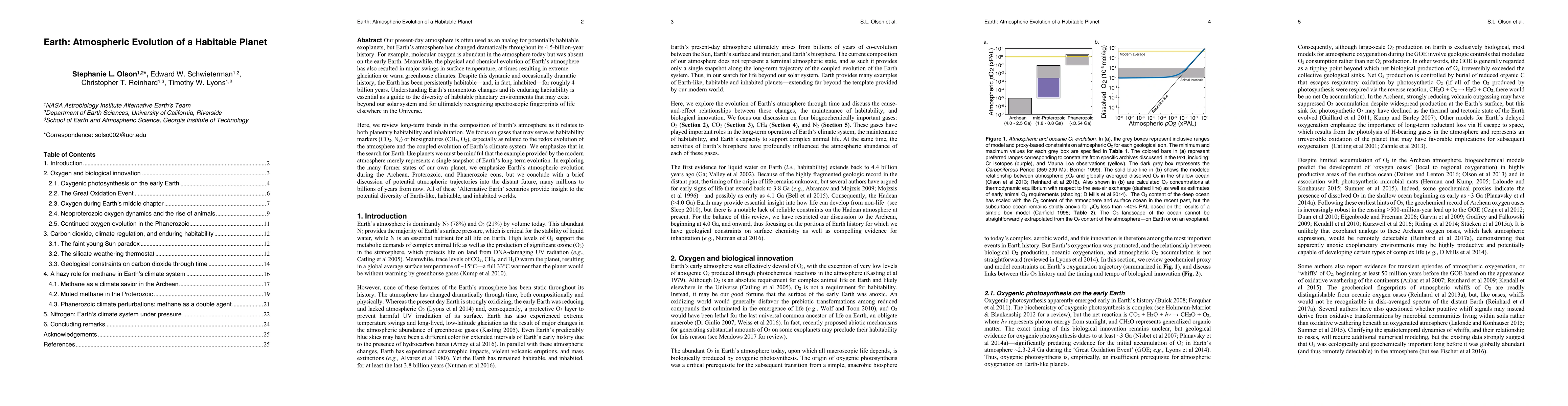 Our present-day atmosphere is often used as an analog for potentially habitable exoplanets, but Earth's atmosphere has changed dramatically throughout its 4.5 billion year history. For example, molecular oxygen is abundant in the atmosphere today but was absent on the early Earth. Meanwhile, the physical and chemical evolution of Earth's atmosphere has also resulted in major swings in surface temperature, at times resulting in extreme glaciation or warm greenhouse climates. Despite this dynamic and occasionally dramatic history, the Earth has been persistently habitable--and, in fact, inhabited--for roughly 4 billion years. Understanding Earth's momentous changes and its enduring habitability is essential as a guide to the diversity of habitable planetary environments that may exist beyond our solar system and for ultimately recognizing spectroscopic fingerprints of life elsewhere in the Universe. Here, we review long-term trends in the composition of Earth's atmosphere as it relates to both planetary habitability and inhabitation. We focus on gases that may serve as habitability markers (CO2, N2) or biosignatures (CH4, O2), especially as related to the redox evolution of the atmosphere and the coupled evolution of Earth's climate system. We emphasize that in the search for Earth-like planets we must be mindful that the example provided by the modern atmosphere merely represents a single snapshot of Earth's long-term evolution. In exploring the many former states of our own planet, we emphasize Earth's atmospheric evolution during the Archean, Proterozoic, and Phanerozoic eons, but we conclude with a brief discussion of potential atmospheric trajectories into the distant future, many millions to billions of years from now. All of these 'Alternative Earth' scenarios provide insight to the potential diversity of Earth-like, habitable, and inhabited worlds.