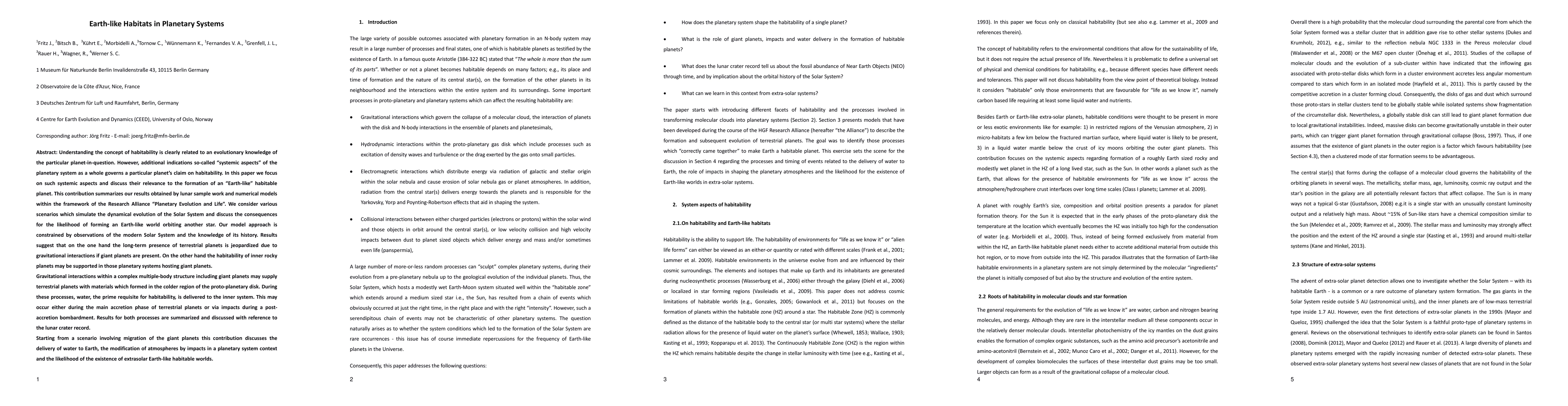 Understanding the concept of habitability is related to an evolutionary knowledge of the particular planet-in-question. Additional indications so-called "systemic aspects" of the planetary system as a whole governs a particular planet's claim on habitability. Here we focus on such systemic aspects and discuss their relevance to the formation of an 'Earth-like' habitable planet. We summarize our results obtained by lunar sample work and numerical models within the framework of the Research Alliance "Planetary Evolution and Life". We consider various scenarios which simulate the dynamical evolution of the Solar System and discuss the likelihood of forming an Earth-like world orbiting another star. Our model approach is constrained by observations of the modern Solar System and the knowledge of its history. Results suggest that the long-term presence of terrestrial planets is jeopardized due to gravitational interactions if giant planets are present. But habitability of inner rocky planets may be supported in those planetary systems hosting giant planets. Gravitational interactions within a complex multiple-body structure including giant planets may supply terrestrial planets with materials which formed in the colder region of the proto-planetary disk. During these processes, water, the prime requisite for habitability, is delivered to the inner system. This may occur either during the main accretion phase of terrestrial planets or via impacts during a post-accretion bombardment. Results for both processes are summarized and discussed with reference to the lunar crater record. Starting from a scenario involving migration of the giant planets this contribution discusses the delivery of water to Earth, the modification of atmospheres by impacts in a planetary system context and the likelihood of the existence of extrasolar Earth-like habitable worlds.