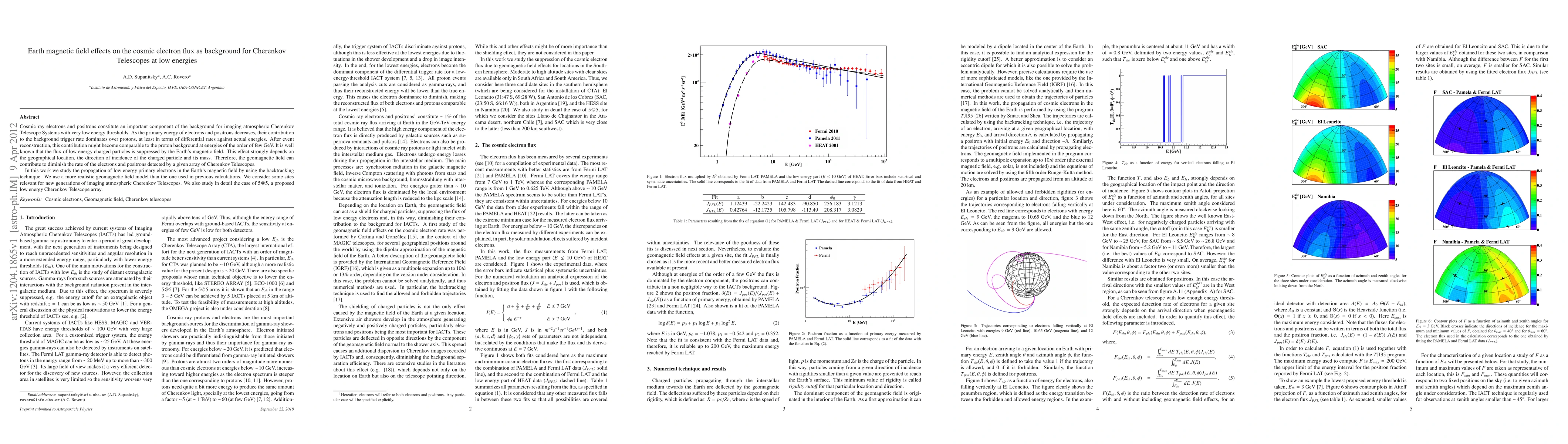 The Earth's magnetic field affects the cosmic electron flux, reducing its detection rate for imaging atmospheric Cherenkov Telescopes. This effect varies depending on location and particle direction.