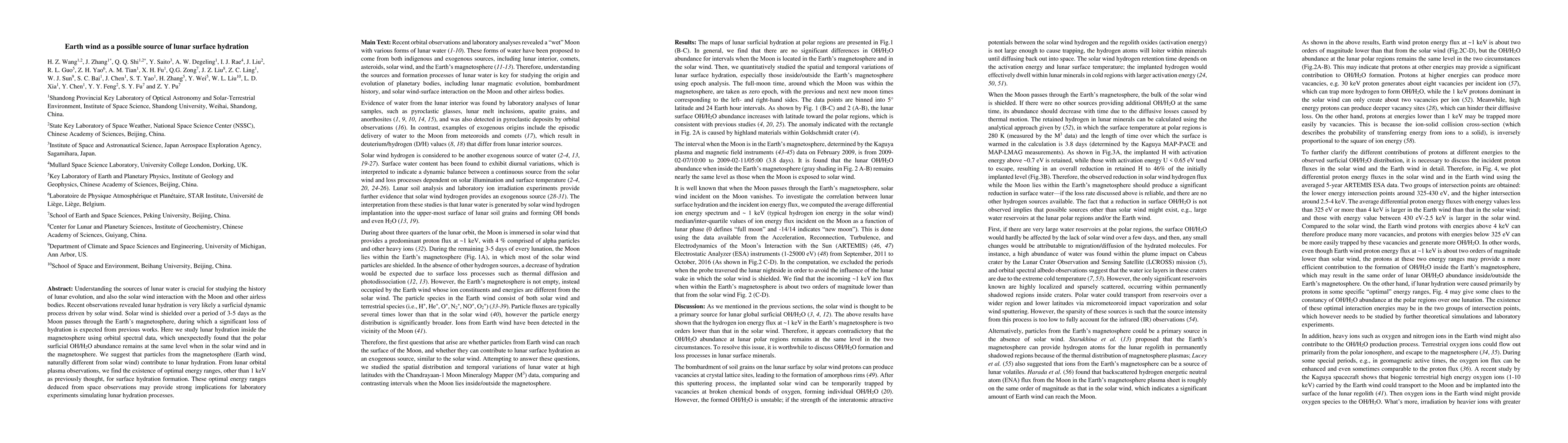 This research explores lunar surface hydration, suggesting that Earth wind, rather than solar wind, may be a significant source. Contrary to expectations, lunar hydration levels remain consistent inside Earth's magnetosphere, indicating a role for particles from Earth's magnetosphere in maintaining hydration.