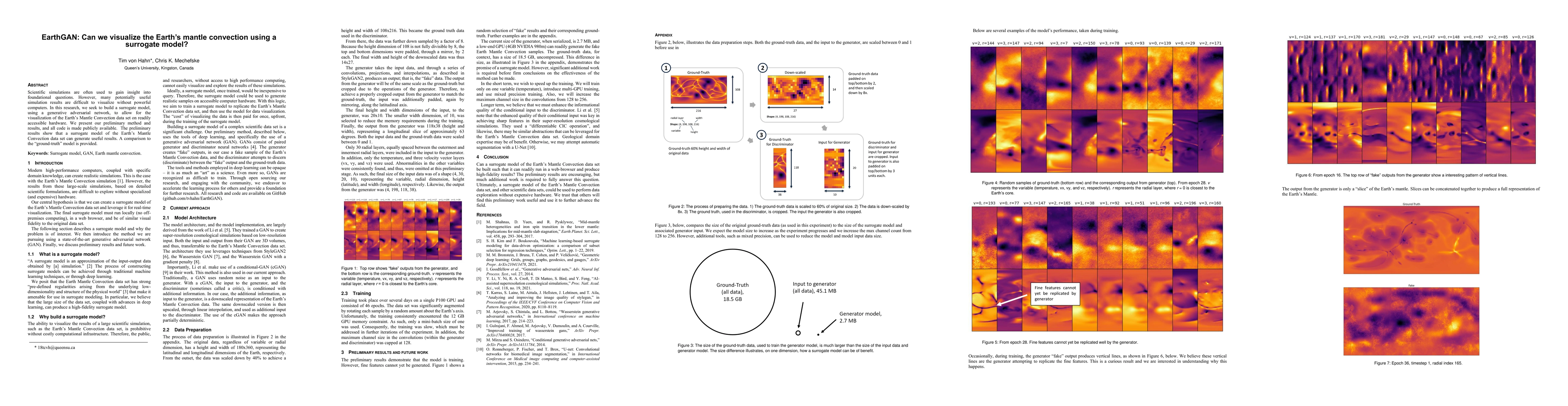 Scientific simulations are often used to gain insight into foundational questions. However, many potentially useful simulation results are difficult to visualize without powerful computers. In this research, we seek to build a surrogate model, using a generative adversarial network, to allow for the visualization of the Earth's Mantle Convection data set on readily accessible hardware. We present our preliminary method and results, and all code is made publicly available. The preliminary results show that a surrogate model of the Earth's Mantle Convection data set can generate useful results. A comparison to the "ground-truth" is provided.