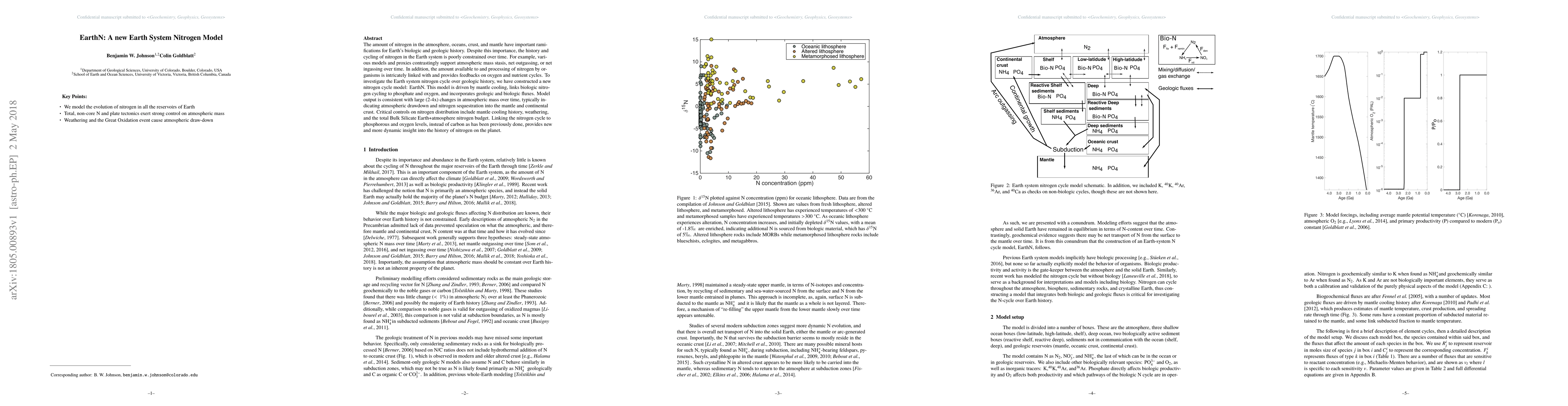 EarthN is a new model for understanding the nitrogen cycle in Earth's system, driven by mantle cooling and linking nitrogen to phosphate and oxygen cycles. It reveals significant atmospheric nitrogen changes over geologic time, emphasizing the role of mantle cooling, weathering, and the nitrogen budget.