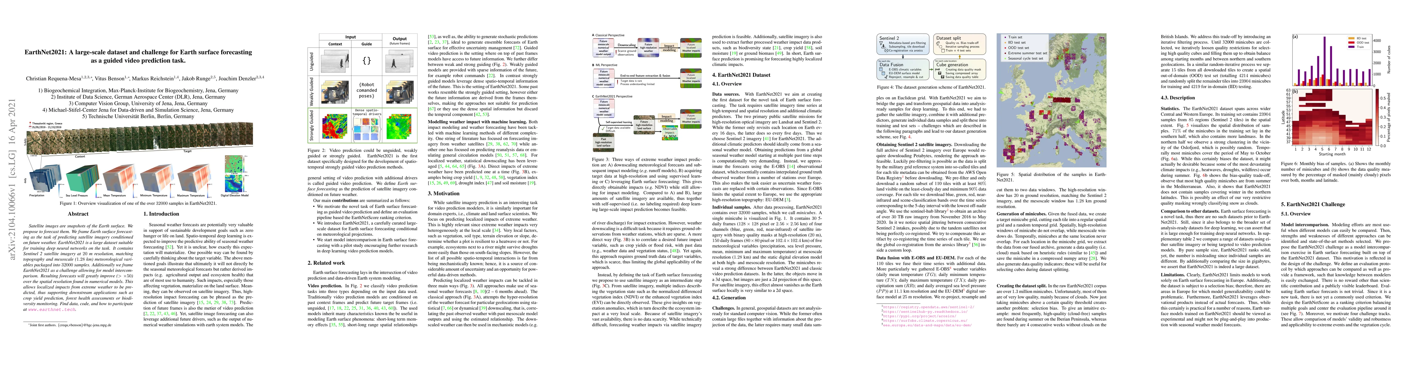 The research introduces EarthNet2021, a large dataset for forecasting satellite imagery based on future weather conditions. This guided video prediction task, using Sentinel 2 imagery and meteorological variables, significantly improves spatial resolution, enabling localized predictions for applications like crop yield and forest health assessments.