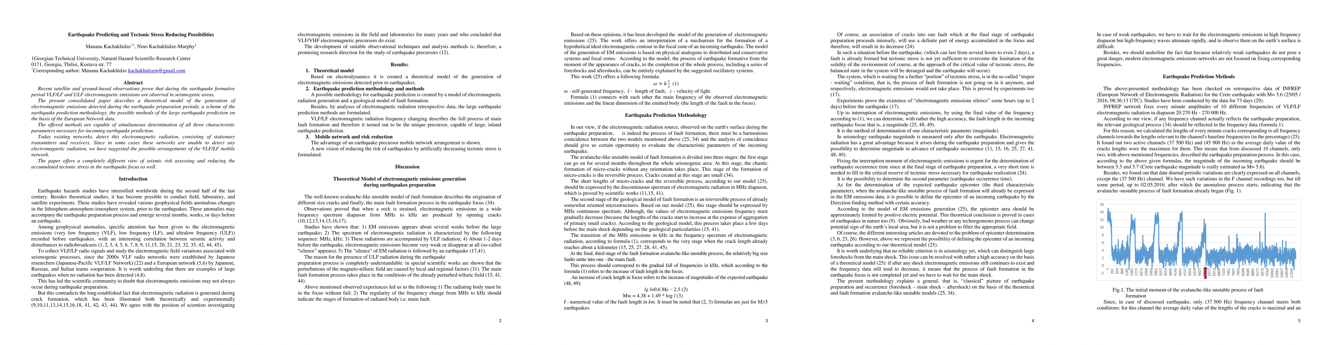 The paper describes a theoretical model of the generation of electromagnetic emissions detected prior to the earthquake, a scheme of the earthquake prediction methodology, the possible methods, which are capable of simultaneous determination of all three characteristic parameters necessary for incoming earthquake prediction. We have suggested the possible arrangements of the VLF/LF mobile network and offered a completely different view of seismic risk assessing and reducing the accumulated tectonic stress in the earthquake focus as well.