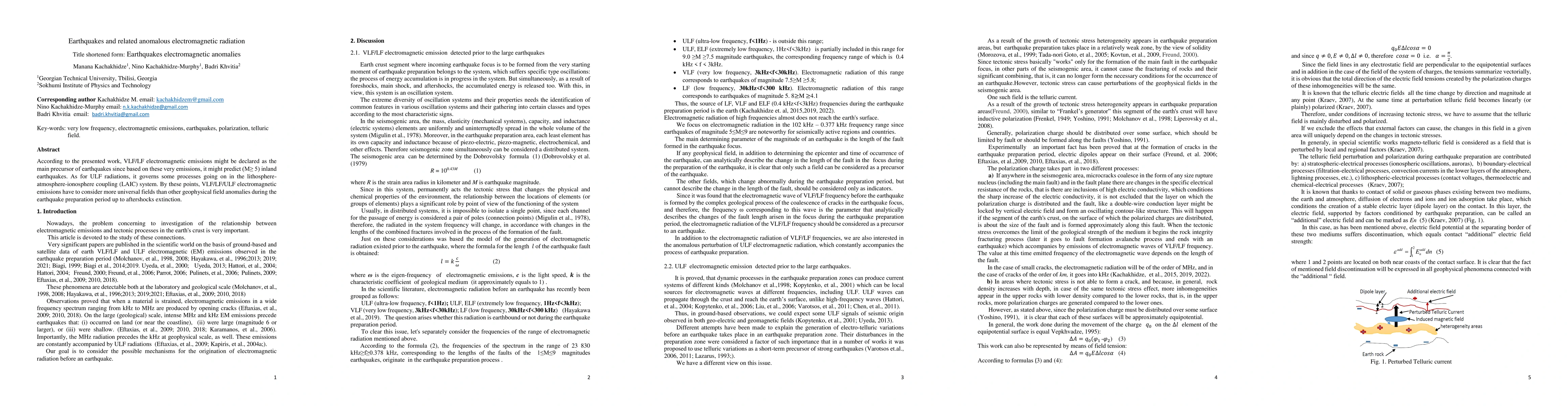 This research suggests that VLF/LF electromagnetic emissions can predict inland earthquakes of magnitude $M\ge 5$ and that ULF radiations influence the lithosphere-atmosphere-ionosphere coupling system, indicating their importance in earthquake preparation and aftershocks.