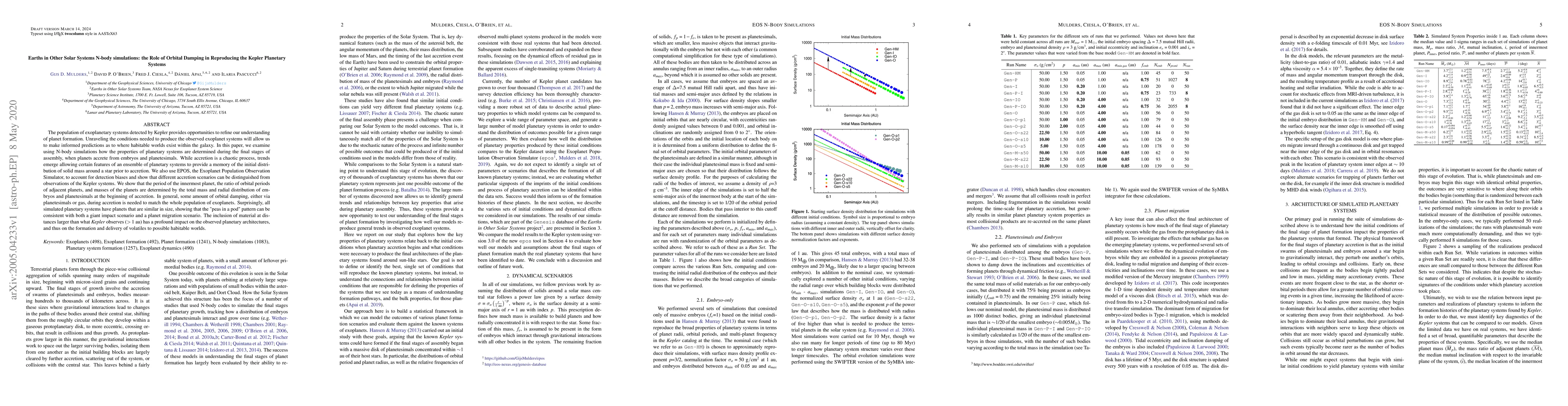 This paper explores N-body simulations of exoplanetary systems to understand how orbital damping influences the formation of planetary systems similar to those observed by Kepler. The study reveals that the initial mass distribution and orbital damping are crucial for matching observed planetary architectures, highlighting the importance of material beyond Kepler's detection range in the formation of habitable worlds.