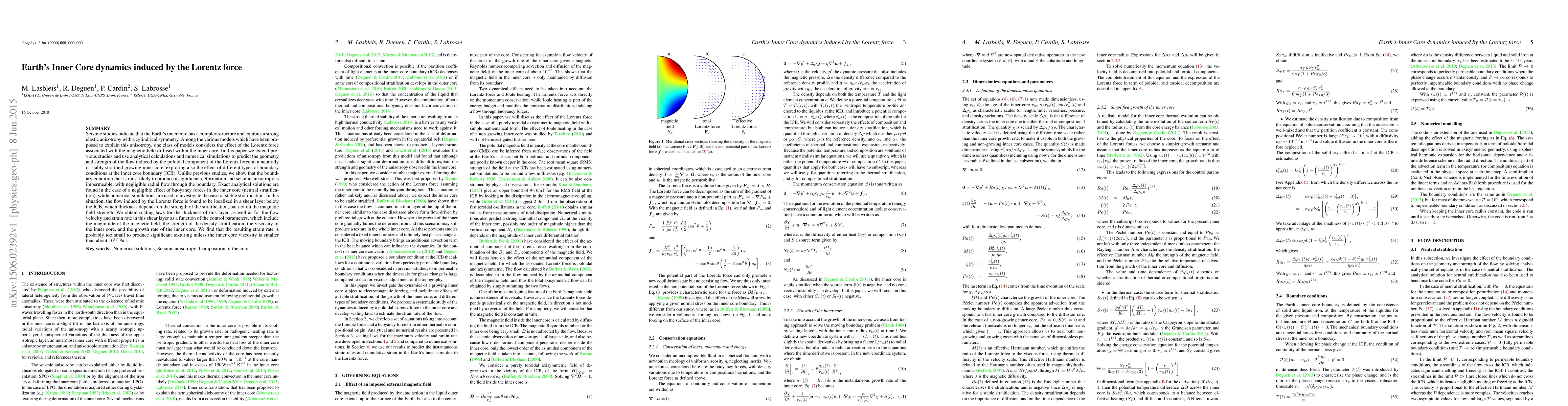 This paper investigates the dynamics of Earth's inner core driven by the Lorentz force, finding that impermeable boundary conditions are most likely to produce significant deformation and seismic anisotropy. Analytical and numerical simulations reveal that the flow induced by the Lorentz force forms a localized shear layer beneath the inner core boundary, with its thickness dependent on stratification rather than magnetic field strength.