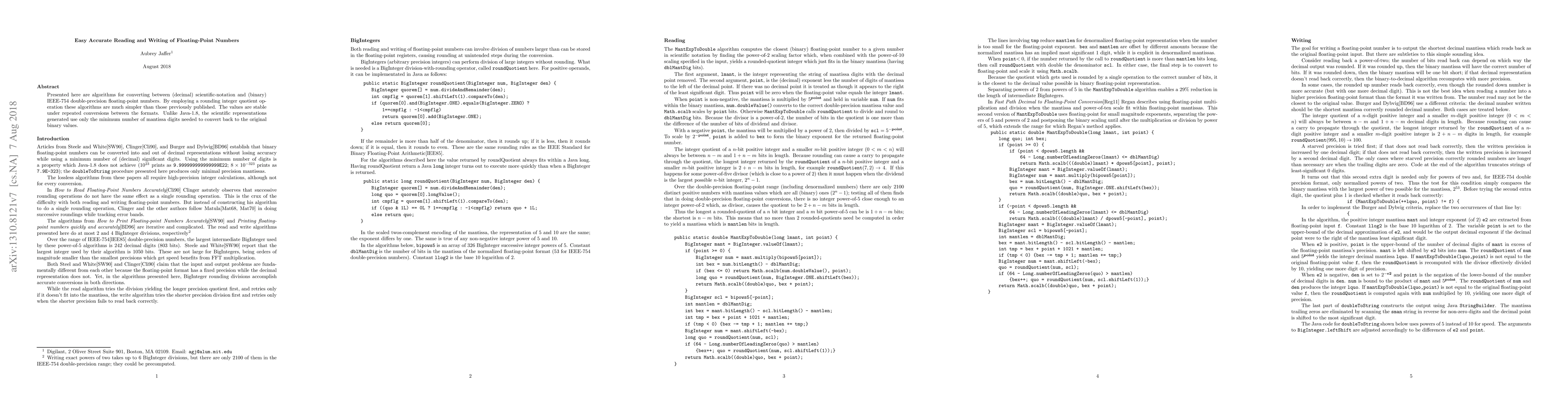 This paper presents simplified algorithms for converting between decimal scientific notation and IEEE-754 double-precision floating-point numbers, ensuring stability and minimal mantissa digits for accurate conversions. The methods utilize a rounding integer quotient operation for ease and efficiency.