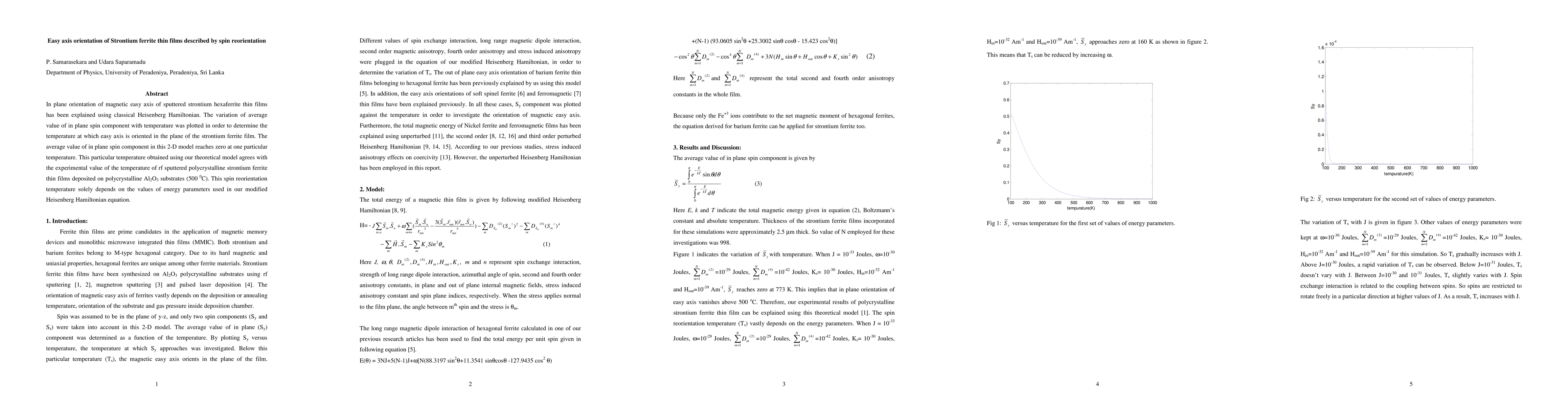The research used a modified Heisenberg Hamiltonian model to describe the easy axis orientation of Strontium ferrite thin films.