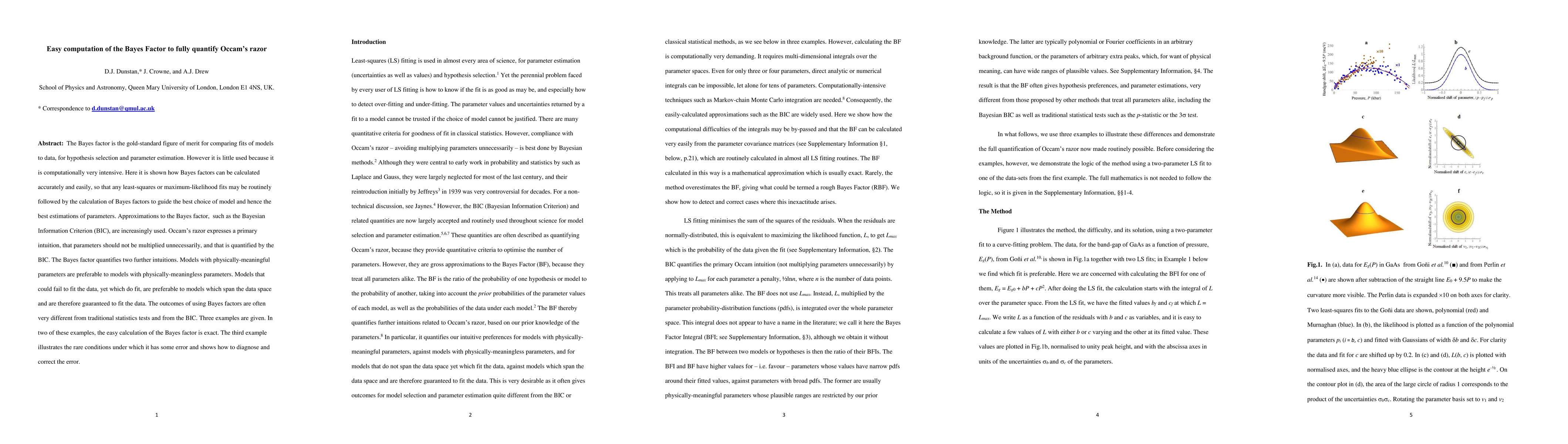 The Bayes factor is the gold-standard figure of merit for comparing fits of models to data, for hypothesis selection and parameter estimation. However it is little used because it is computationally very intensive. Here it is shown how Bayes factors can be calculated accurately and easily, so that any least-squares or maximum-likelihood fits may be routinely followed by the calculation of Bayes factors to guide the best choice of model and hence the best estimations of parameters. Approximations to the Bayes factor, such as the Bayesian Information Criterion (BIC), are increasingly used. Occam's razor expresses a primary intuition, that parameters should not be multiplied unnecessarily, and that is quantified by the BIC. The Bayes factor quantifies two further intuitions. Models with physically-meaningful parameters are preferable to models with physically-meaningless parameters. Models that could fail to fit the data, yet which do fit, are preferable to models which span the data space and are therefore guaranteed to fit the data. The outcomes of using Bayes factors are often very different from traditional statistics tests and from the BIC. Three examples are given. In two of these examples, the easy calculation of the Bayes factor is exact. The third example illustrates the rare conditions under which it has some error and shows how to diagnose and correct the error.