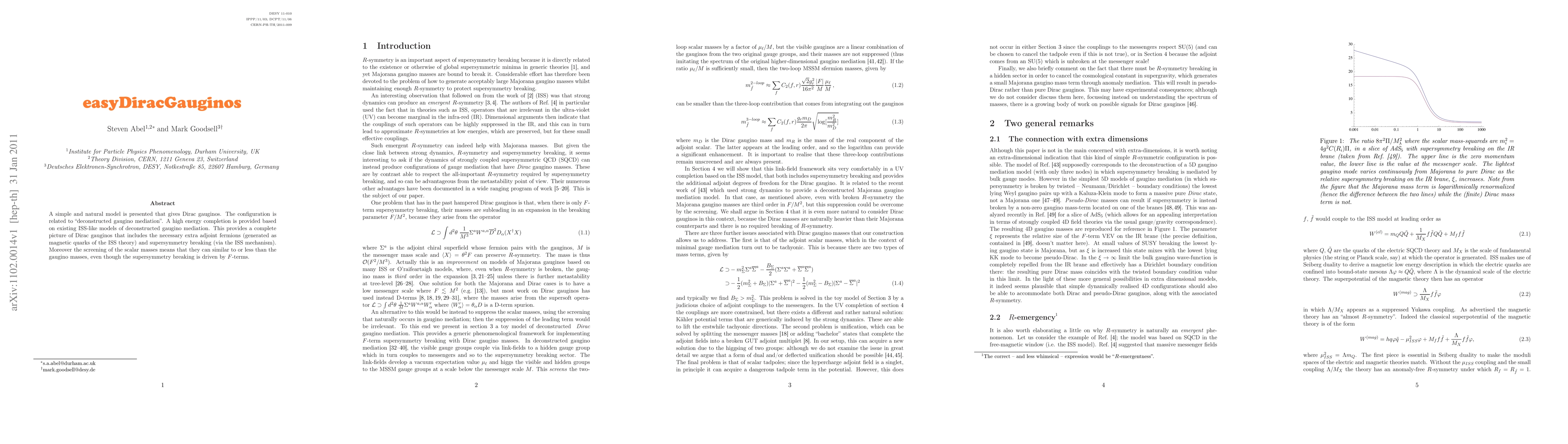 A simple and natural model is presented that gives Dirac gauginos. The configuration is related to "deconstructed gaugino mediation". A high energy completion is provided based on existing ISS-like models of deconstructed gaugino mediation. This provides a complete picture of Dirac gauginos that includes the necessary extra adjoint fermions (generated as magnetic quarks of the ISS theory) and supersymmetry breaking (via the ISS mechanism). Moreover the screening of the scalar masses means that they can similar to or less than the gaugino masses, even though the supersymmetry breaking is driven by F-terms.