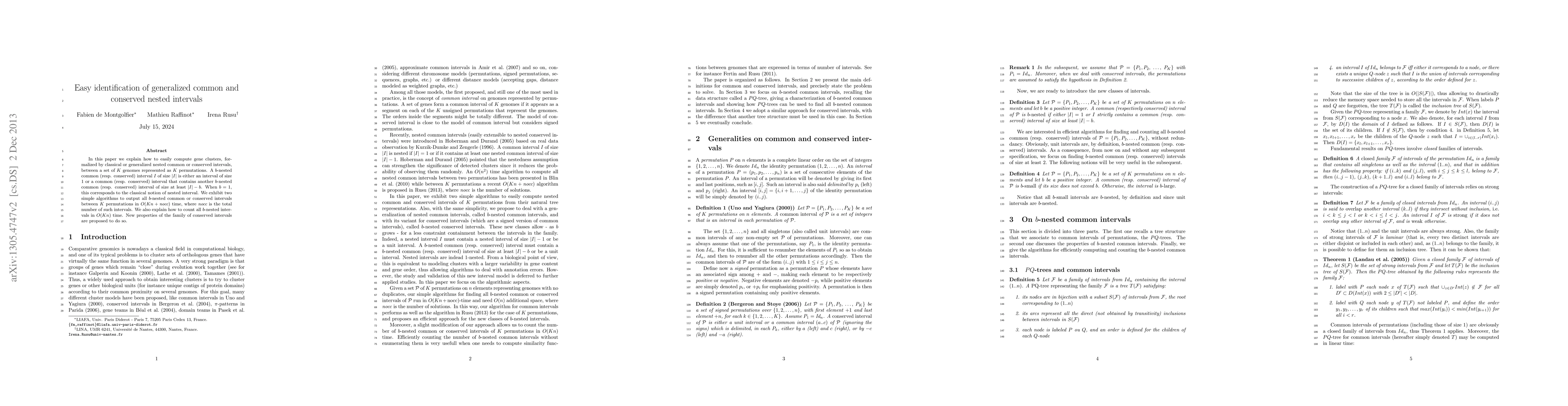 Researchers developed algorithms to identify gene clusters in genomes with high accuracy, allowing for easy computation of nested common intervals between multiple genomes. The methods can output results in O(Kn+nocc) time, enabling efficient analysis of genomic data.