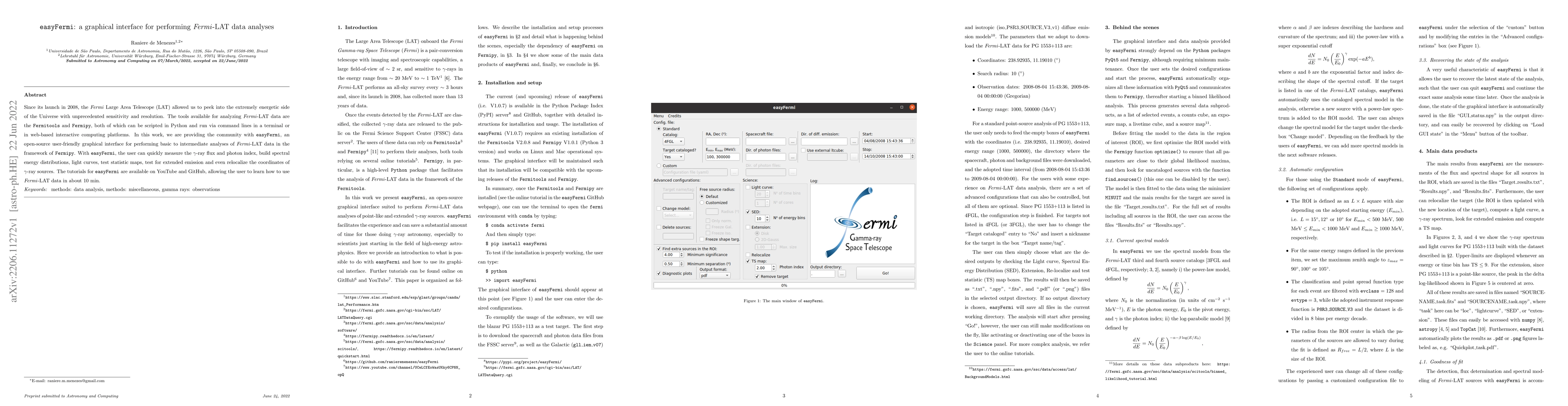 easyFermi offers a user-friendly graphical interface for Fermi-LAT data analysis, simplifying tasks like measuring gamma-ray flux and building spectral energy distributions, and is available open-source with tutorials on YouTube and GitHub.