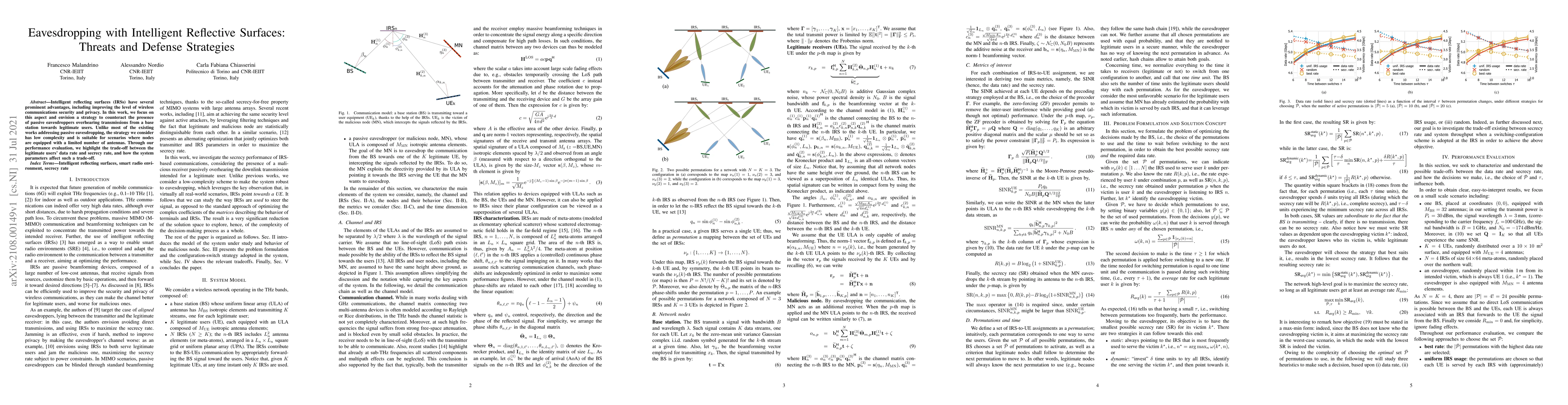 Intelligent reflecting surfaces (IRSs) have several prominent advantages, including improving the level of wireless communications security and privacy. In this work, we focus on this aspect and envision a strategy to counteract the presence of passive eavesdroppers overhearing transmissions from a base station towards legitimate users. Unlike most of the existing works addressing passive eavesdropping, the strategy we consider has low complexity and is suitable for scenarios where nodes are equipped with a limited number of antennas. Through our performance evaluation, we highlight the trade-off between the legitimate users' data rate and secrecy rate, and how the system parameters affect such a trade-off.
