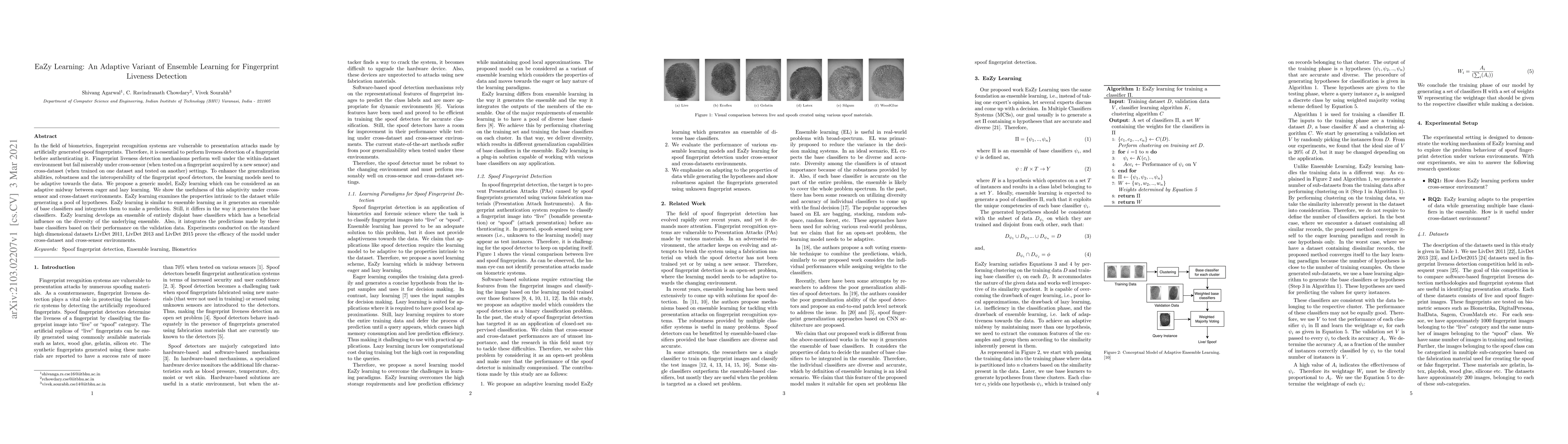 EaZy Learning proposes an adaptive ensemble method for fingerprint liveness detection, enhancing generalization and robustness across different sensors and datasets. It generates diverse, disjoint base classifiers and integrates their predictions based on validation performance, demonstrating superior efficacy in cross-sensor and cross-dataset scenarios.