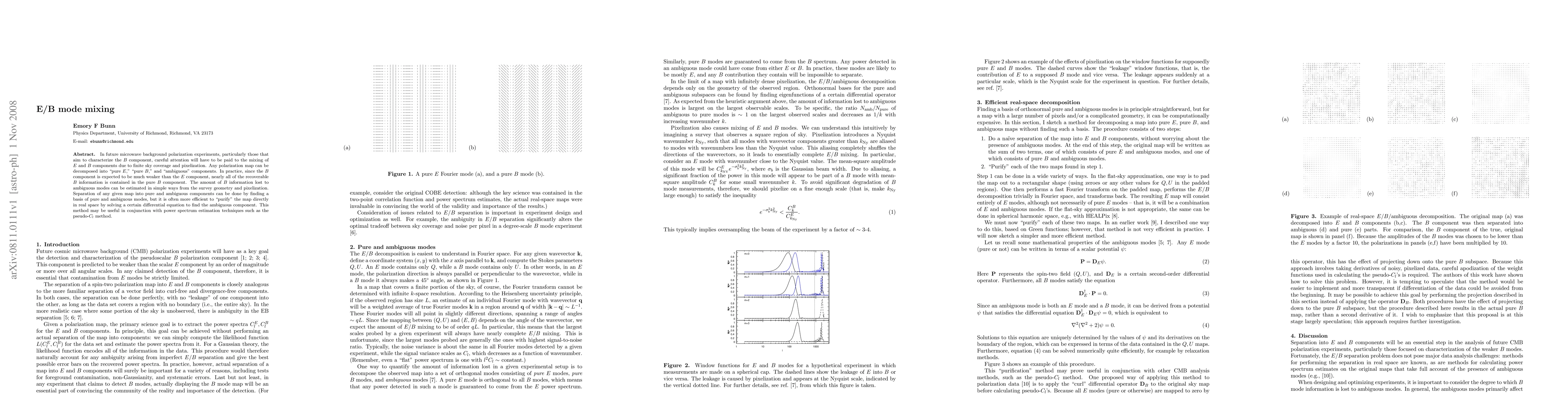 This paper discusses the challenges of separating E/B modes in future microwave background polarization experiments, focusing on the mixing of these modes due to finite sky coverage and pixelization. It proposes methods for estimating and reducing the loss of B information in ambiguous modes to enhance the characterization of the B component.