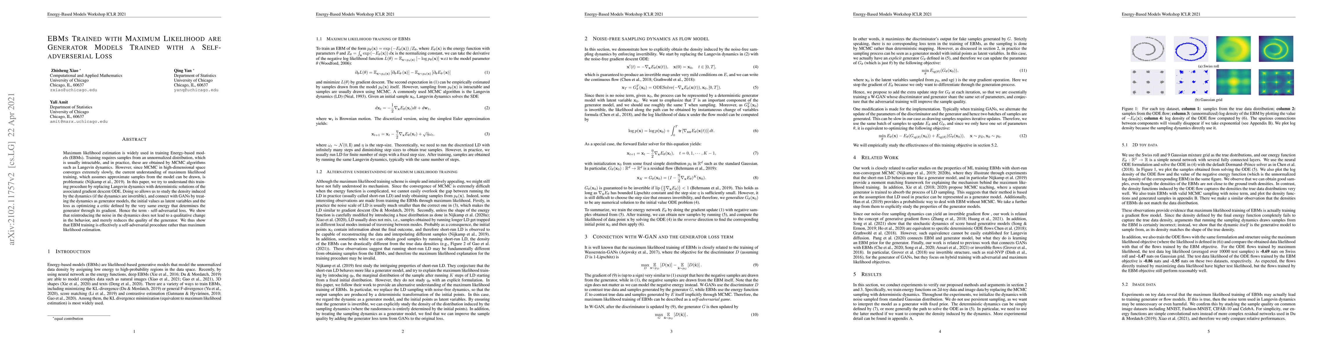 Maximum likelihood estimation is widely used in training Energy-based models (EBMs). Training requires samples from an unnormalized distribution, which is usually intractable, and in practice, these are obtained by MCMC algorithms such as Langevin dynamics. However, since MCMC in high-dimensional space converges extremely slowly, the current understanding of maximum likelihood training, which assumes approximate samples from the model can be drawn, is problematic. In this paper, we try to understand this training procedure by replacing Langevin dynamics with deterministic solutions of the associated gradient descent ODE. Doing so allows us to study the density induced by the dynamics (if the dynamics are invertible), and connect with GANs by treating the dynamics as generator models, the initial values as latent variables and the loss as optimizing a critic defined by the very same energy that determines the generator through its gradient. Hence the term - self-adversarial loss. We show that reintroducing the noise in the dynamics does not lead to a qualitative change in the behavior, and merely reduces the quality of the generator. We thus show that EBM training is effectively a self-adversarial procedure rather than maximum likelihood estimation.