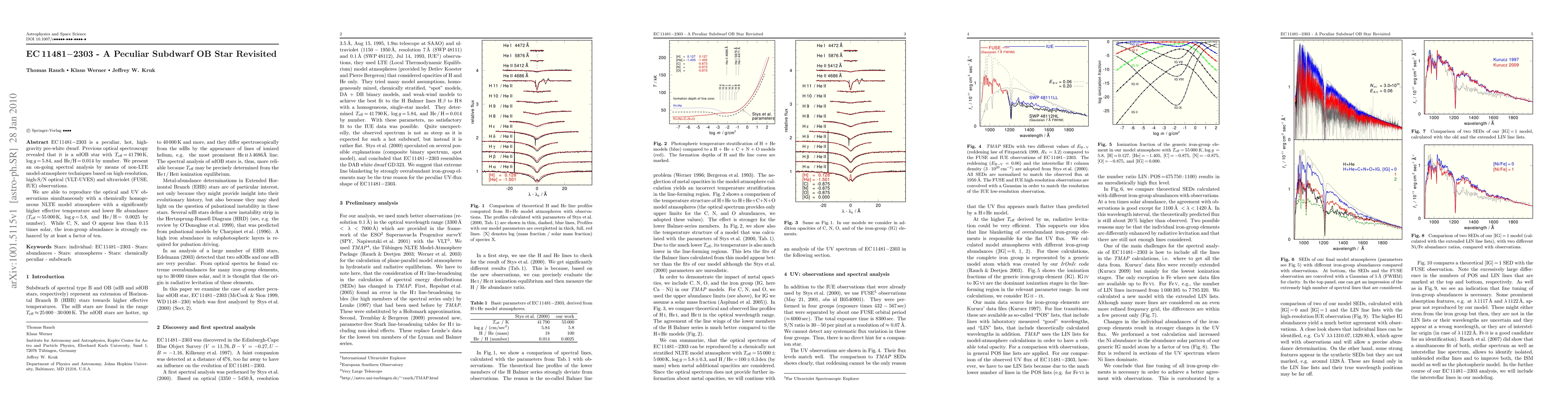 A peculiar subdwarf OB star, EC 11481-2303, has been reanalyzed using non-LTE model-atmosphere techniques, revealing a significantly higher effective temperature and lower helium abundance than initially reported.