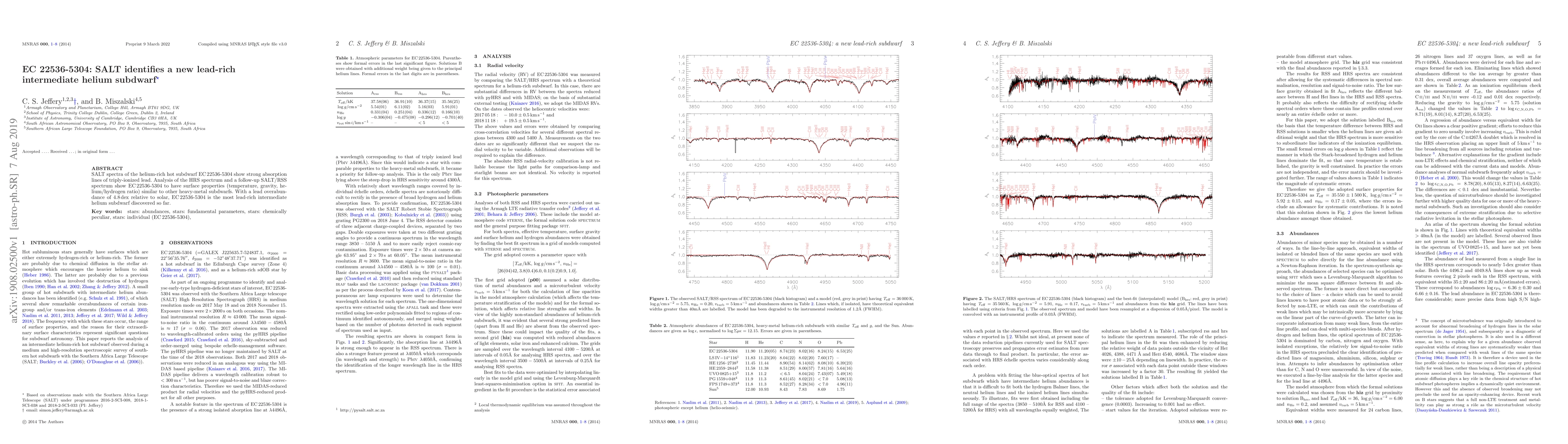 The SALT spectra reveal that EC 22536-5304 is a lead-rich intermediate helium subdwarf with a lead abundance 4.8 dex above solar levels, making it the most lead-rich of its kind discovered to date. Its surface properties align with other heavy-metal subdwarfs.