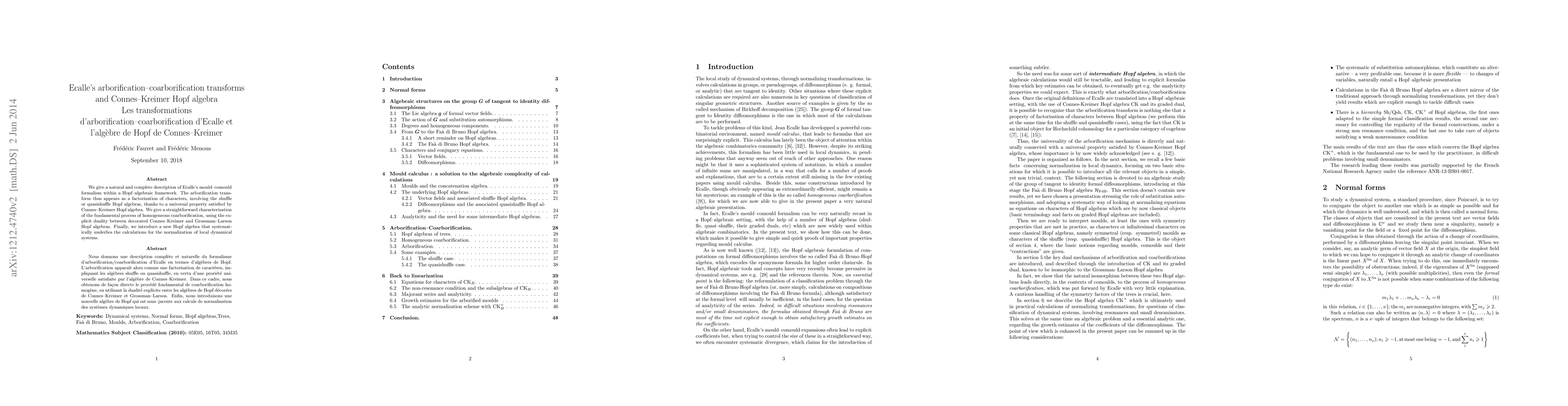 We give a natural and complete description of Ecalle's mould-comould formalism within a Hopf-algebraic framework. The arborification transform thus appears as a factorization of characters, involving the shuffle or quasishuffle Hopf algebras, thanks to a universal property satisfied by Connes-Kreimer Hopf algebra. We give a straightforward characterization of the fundamental process of homogeneous coarborification, using the explicit duality between decorated Connes-Kreimer and Grossman-Larson algebras. Finally, we introduce a new Hopf algebra that systematically underlies the calculations for the normalization of local dynamical systems.