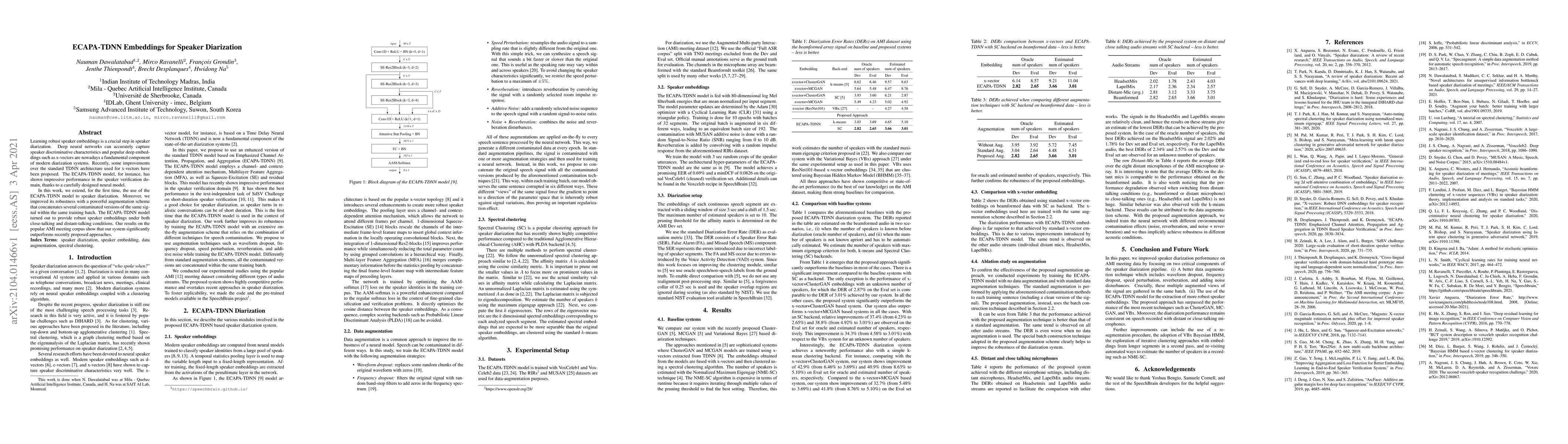 The paper presents an extension of the ECAPA-TDNN model for speaker diarization, incorporating a novel data augmentation scheme that improves robustness.
