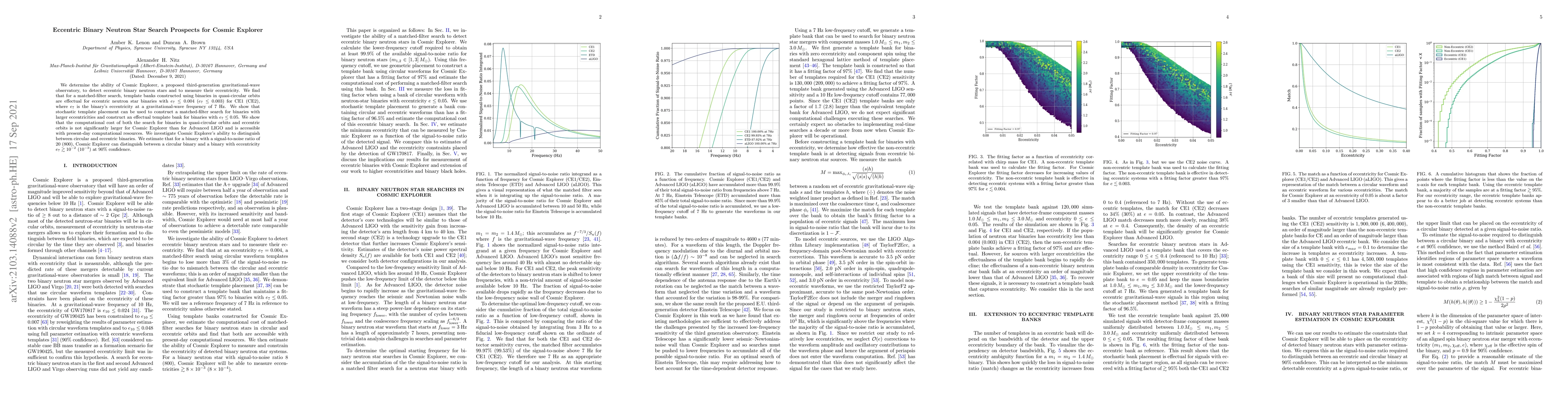 Cosmic Explorer can detect eccentric binary neutron stars and measure their eccentricities, with matched-filter searches using quasi-circular templates for binaries with $e_{7} \leq 0.004$ and stochastic templates for $e_{7} \leq 0.05$. The computational demands remain manageable compared to Advanced LIGO.