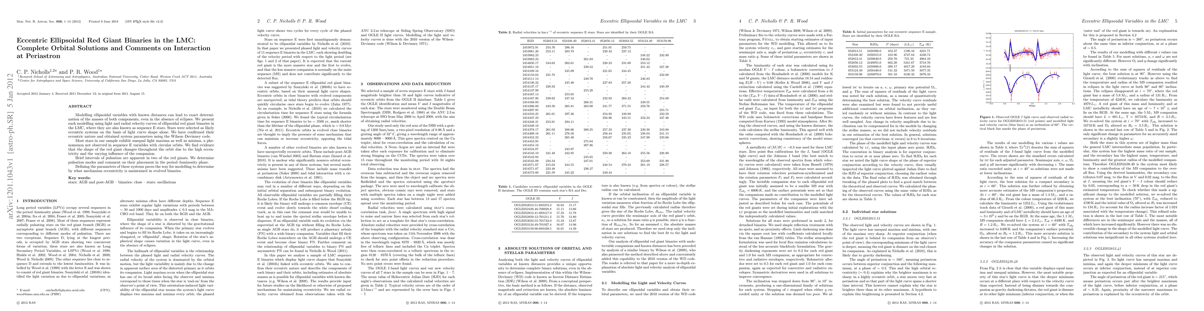 This paper models eccentric ellipsoidal red giant binaries in the Large Magellanic Cloud (LMC), determining precise masses and orbital parameters using light and radial velocity curves. It finds evidence of significant changes in the red giant's shape due to high eccentricity and companion influence, and discusses pulsation modes in two stars.