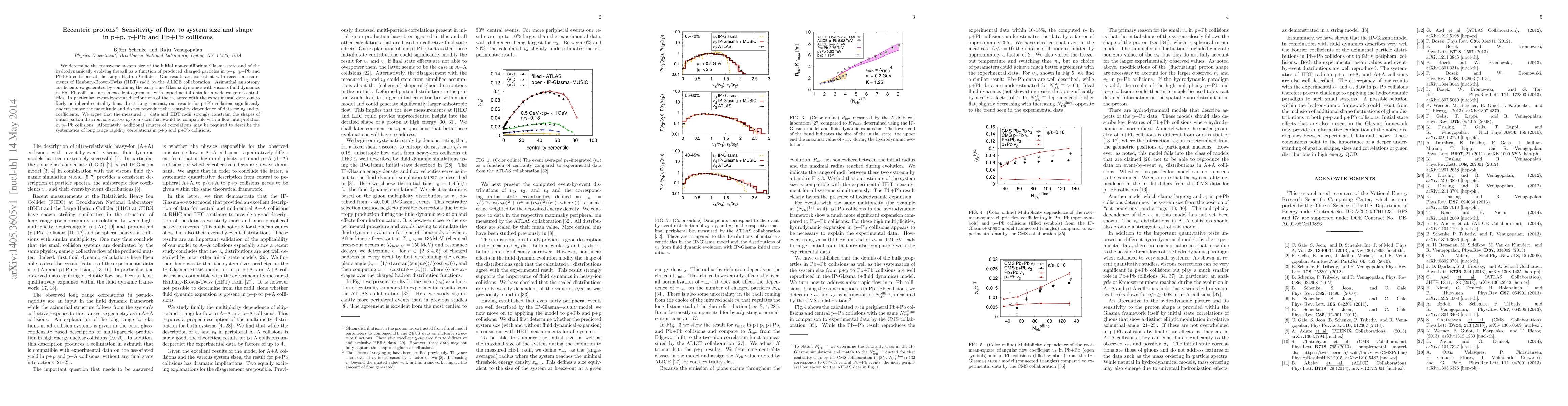 We determine the transverse system size of the initial non-equilibrium Glasma state and of the hydrodynamically evolving fireball as a function of produced charged particles in p+p, p+Pb and Pb+Pb collisions at the Large Hadron Collider. Our results are consistent with recent measurements of Hanbury-Brown-Twiss (HBT) radii by the ALICE collaboration. Azimuthal anisotropy coefficients v_n generated by combining the early time Glasma dynamics with viscous fluid dynamics in Pb+Pb collisions are in excellent agreement with experimental data for a wide range of centralities. In particular, event-by-event distributions of the v_n agree with the experimental data out to fairly peripheral centrality bins. In striking contrast, our results for p+Pb collisions significantly underestimate the magnitude and do not reproduce the centrality dependence of data for v_2 and v_3 coefficients. We argue that the measured v_n data and HBT radii strongly constrain the shapes of initial parton distributions across system sizes that would be compatible with a flow interpretation in p+Pb collisions. Alternately, additional sources of correlations may be required to describe the systematics of long range rapidity correlations in p+p and p+Pb collisions.