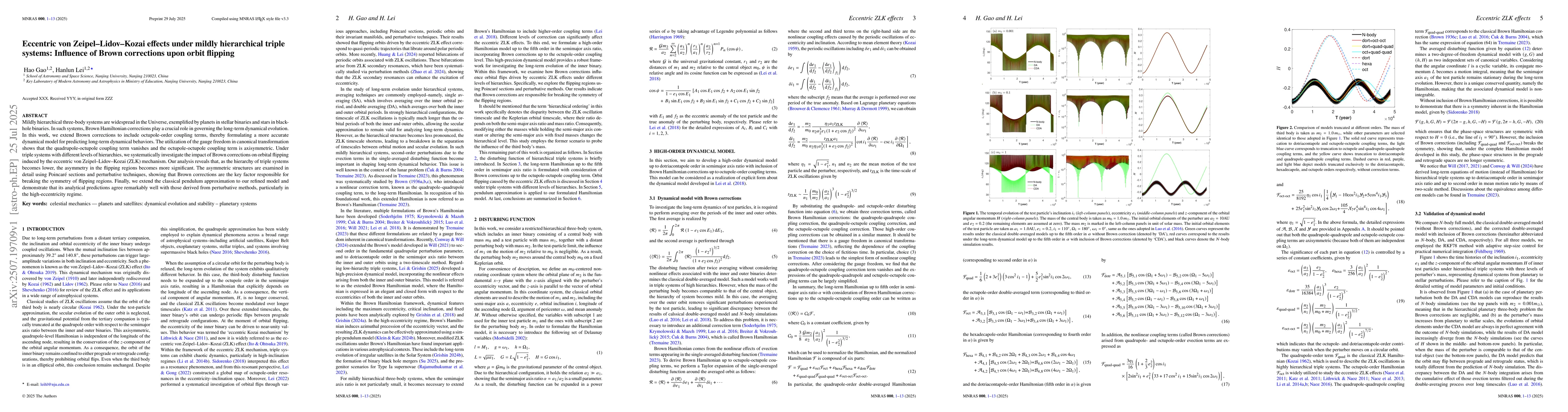 Mildly hierarchical three-body systems are widespread in the Universe, exemplified by planets in stellar binaries and stars in black-hole binaries. In such systems, Brown Hamiltonian corrections play a crucial role in governing the long-term dynamical evolution. In this work, we extend Brown corrections to include octupole-order coupling terms, thereby formulating a more accurate dynamical model for predicting long-term dynamical behaviors. The utilization of the gauge freedom in canonical transformation shows that the quadrupole-octupole coupling term vanishes and the octupole-octupole coupling term is axisymmetric. Under triple systems with different levels of hierarchies, we systematically investigate the impact of Brown corrections on orbital flipping induced by the eccentric von Zeipel-Lidov-Kozai (ZLK) mechanism. Our analysis reveals that, as the hierarchy of triple systems becomes lower, the asymmetry in the flipping regions becomes more significant. The asymmetric structures are examined in detail using Poincare sections and perturbative techniques, showing that Brown corrections are the key factor responsible for breaking the symmetry of flipping regions. Finally, we extend the classical pendulum approximation to our refined model and demonstrate that its analytical predictions agree remarkably well with those derived from perturbative methods, particularly in the high-eccentricity regime.