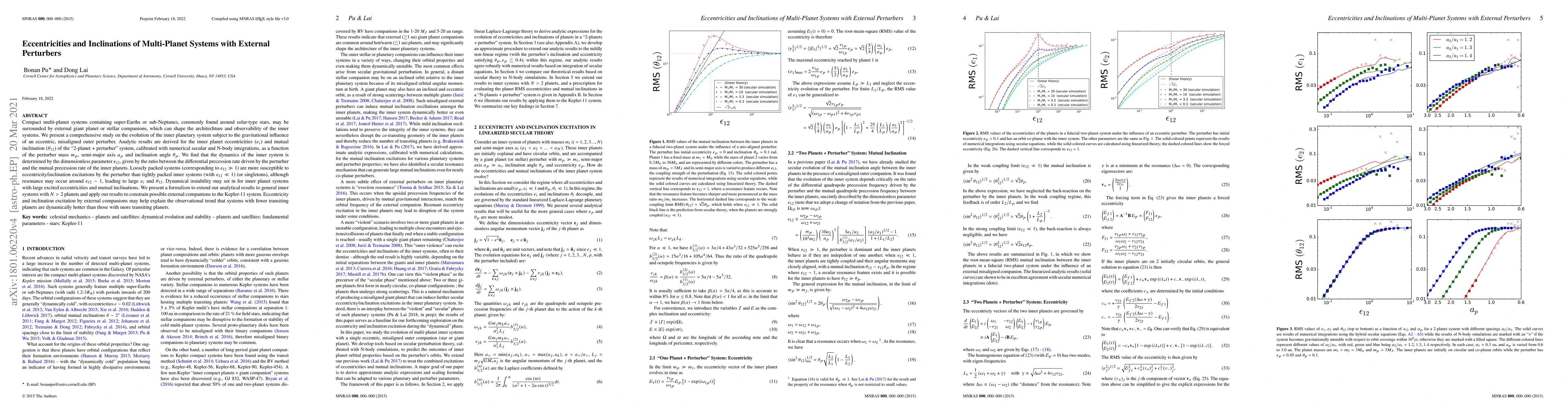 This paper investigates how external giant planets or stars influence the eccentricities and inclinations of compact multi-planet systems. It finds that loosely packed inner systems are more susceptible to eccentricity and inclination excitations by external perturbers, potentially leading to dynamical instability.