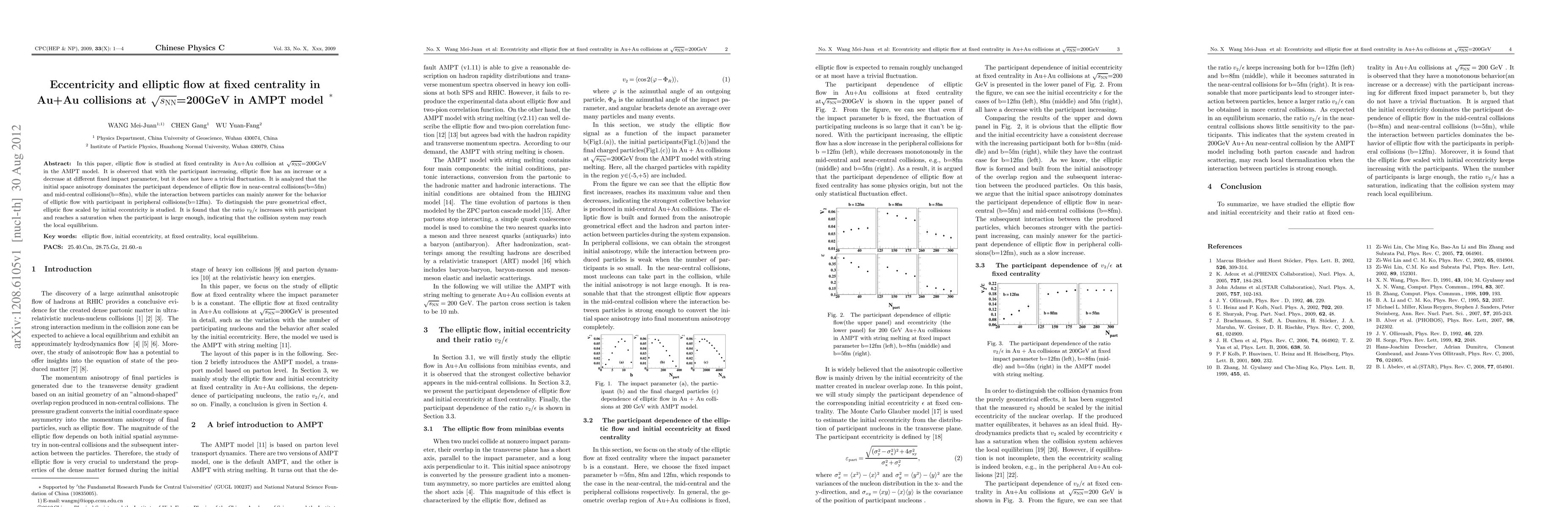 This study investigates elliptic flow in Au+Au collisions at 200 GeV, focusing on fixed centrality to minimize initial shape fluctuations. The results show that elliptic flow varies with participant number, suggesting initial anisotropy and particle interactions govern flow behavior in different collision regions.