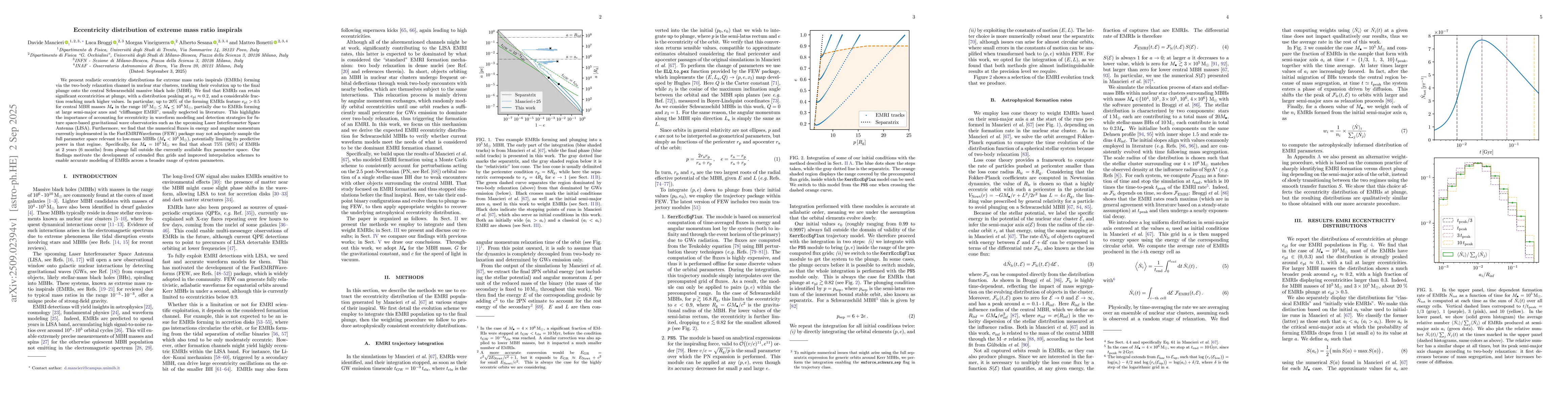 We present realistic eccentricity distributions for extreme mass ratio inspirals (EMRIs) forming via the two-body relaxation channel in nuclear star clusters, tracking their evolution up to the final plunge onto the central Schwarzschild massive black hole (MBH). We find that EMRIs can retain significant eccentricities at plunge, with a distribution peaking at $e_\mathrm{pl} \approx0.2$, and a considerable fraction reaching much higher values. In particular, up to $20\%$ of the forming EMRIs feature $e_\mathrm{pl} > 0.5$ for central MBH masses $M_\bullet$ in the range $10^5 \mathrm{M_\odot} \leq M_\bullet \leq 10^6 \mathrm{M_\odot}$, partially due to EMRIs forming at large semi-major axes and "cliffhanger EMRI", usually neglected in literature. This highlights the importance of accounting for eccentricity in waveform modeling and detection strategies for future space-based gravitational wave observatories such as the upcoming Laser Interferometer Space Antenna (LISA). Furthermore, we find that the numerical fluxes in energy and angular momentum currently implemented in the FastEMRIWaveforms (FEW) package may not adequately sample the full parameter space relevant to low-mass MBHs ($M_\bullet < 10^6 \mathrm{M_\odot}$), potentially limiting its predictive power in that regime. Specifically, for $M_\bullet=10^5 \mathrm{M_\odot}$ we find that about $75\%$ ($50 \%$) of EMRIs at 2 years (6 months) from plunge fall outside the currently available flux parameter space. Our findings motivate the development of extended flux grids and improved interpolation schemes to enable accurate modeling of EMRIs across a broader range of system parameters.