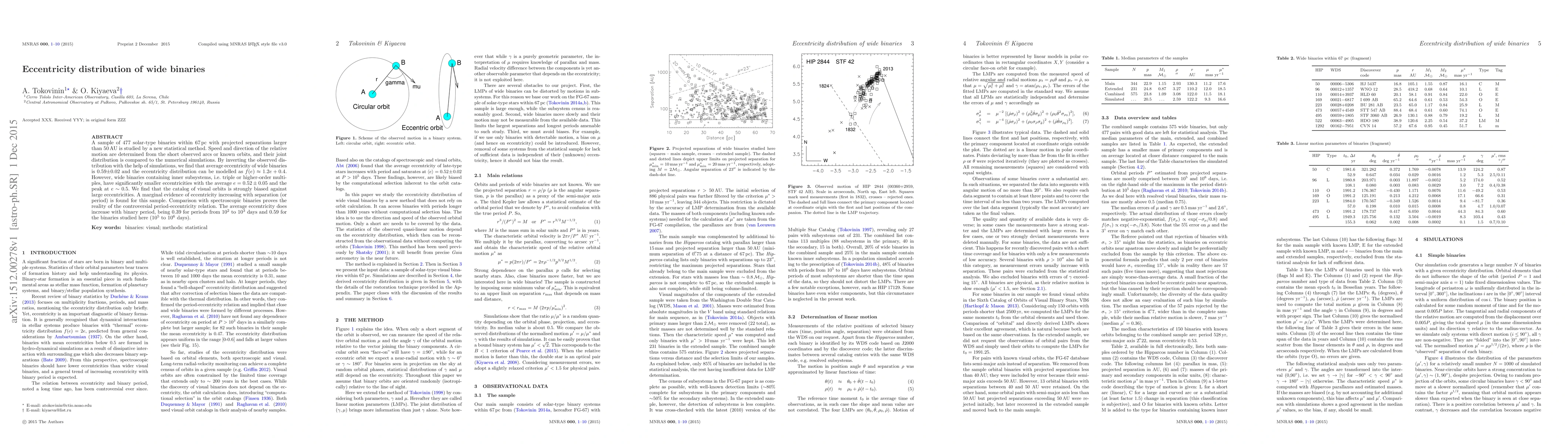 This study investigates the eccentricity distribution of 477 wide solar-type binaries using a new statistical method, finding an average eccentricity of 0.59±0.02. It reveals that binaries with inner subsystems exhibit lower eccentricities, averaging 0.52±0.05, and suggests a bias against large eccentricities in visual orbit catalogs.