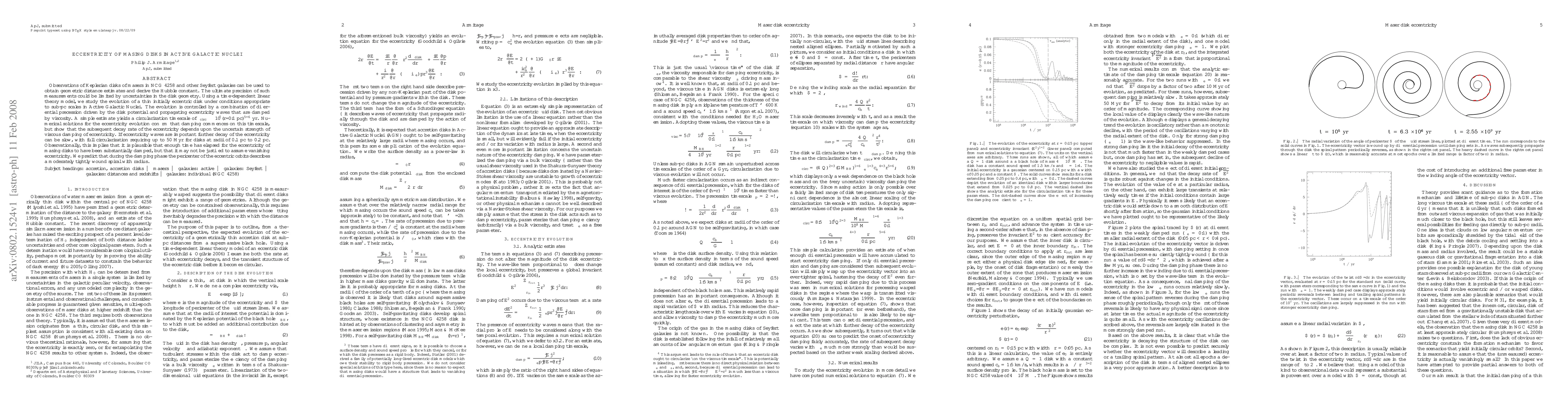 Observations of Keplerian disks of masers in NCG 4258 and other Seyfert galaxies can be used to obtain geometric distance estimates and derive the Hubble constant. The ultimate precision of such measurements could be limited by uncertainties in the disk geometry. Using a time-dependent linear theory model, we study the evolution of a thin initially eccentric disk under conditions appropriate to sub-pc scales in Active Galactic Nuclei. The evolution is controlled by a combination of differential precession driven by the disk potential and propagating eccentricity waves that are damped by viscosity. A simple estimate yields a circularization timescale of approximately 10 Myr at 0.1 pc. Numerical solutions for the eccentricity evolution confirm that damping commences on this timescale, but show that the subsequent decay rate of the eccentricity depends upon the uncertain strength of viscous damping of eccentricity. If eccentricity waves are important further decay of the eccentricity can be slow, with full circularization requiring up to 50 Myr for disks at radii of 0.1 pc to 0.2 pc. Observationally, this implies that it is plausible that enough time has elapsed for the eccentricity of masing disks to have been substantially damped, but that it may not be justified to assume vanishing eccentricity. We predict that during the damping phase the pericenter of the eccentric orbits describes a moderately tightly wound spiral with radius.