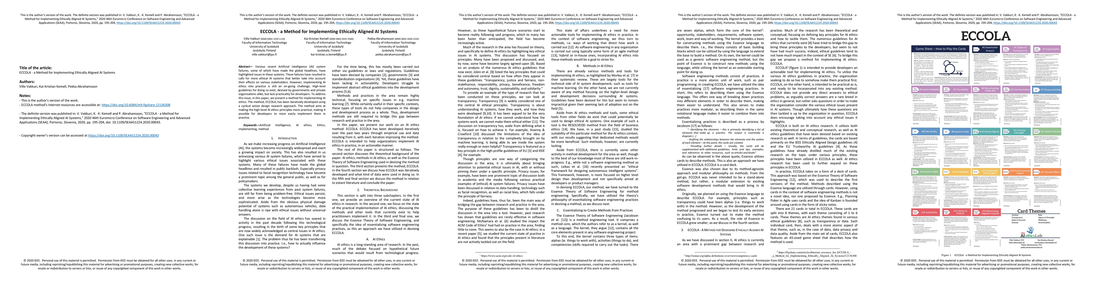 ECCOLA presents a card-based method for implementing AI ethics, drawing on existing guidelines and research, and utilizing the Essence Theory of Software Engineering.